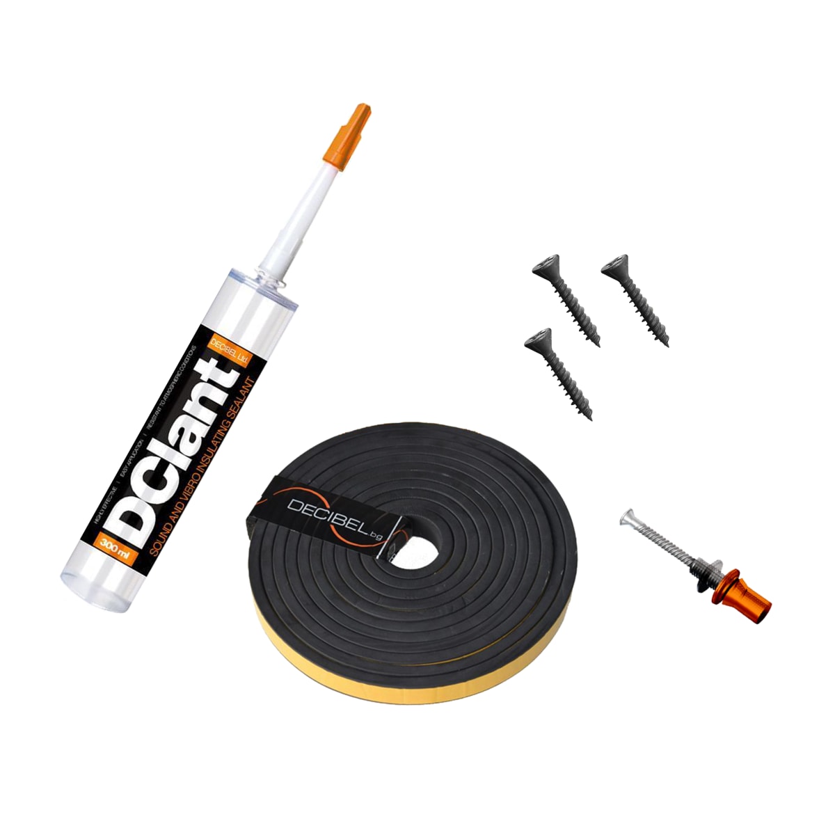 - Kit includes all the essential components to install Decibel's Mute23 / Mute33 / CMute23 / CMute33 Soundproofing boards.