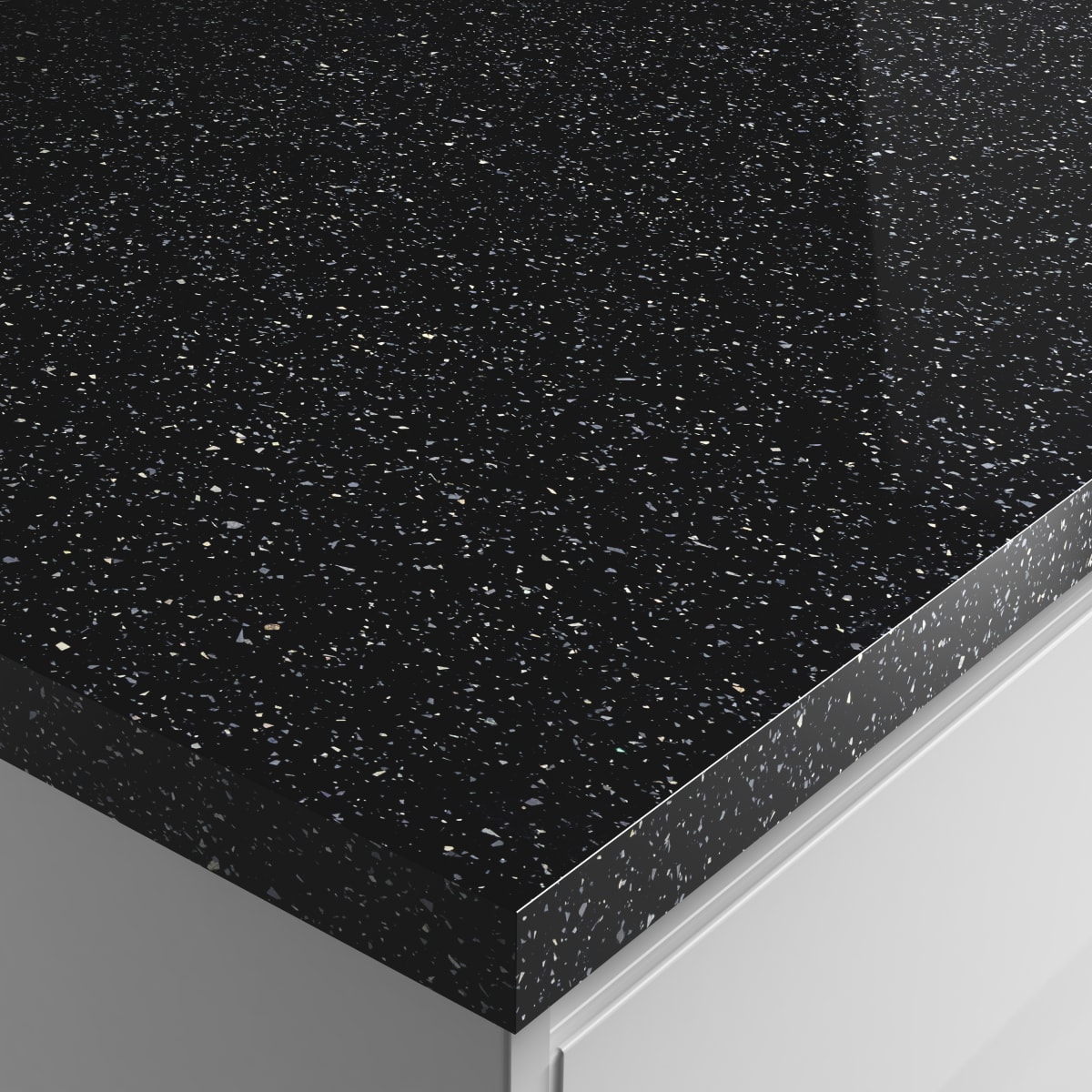 Complete the Strass Noir worktop with the Strass Noir upstand, designed to look and feel like quartz with all the benefits of laminate. Worktop upstands are the ideal way to conceal the join between walls and work surfaces. A stylish alternative to tiles, upstands are also fantastic for disguising any slightly uneven walls behind your worktop.Created using the same high-quality materials as the laminate worktops, upstands are incredibly durable and exceptionally low maintenance. Water and scratch resistant, they can be wiped clean using a soft cloth and some warm soapy water, making them suitable for use in even the busiest of kitchens. Worktop upstands can be cut to size on site without any specialist tools or equipment. Please note: Upstands should not be fitted directly behind a gas hob without additional protection. For other hob types, please refer to the hob manufacturer's guidelines to ensure that your installation complies with safety standards.