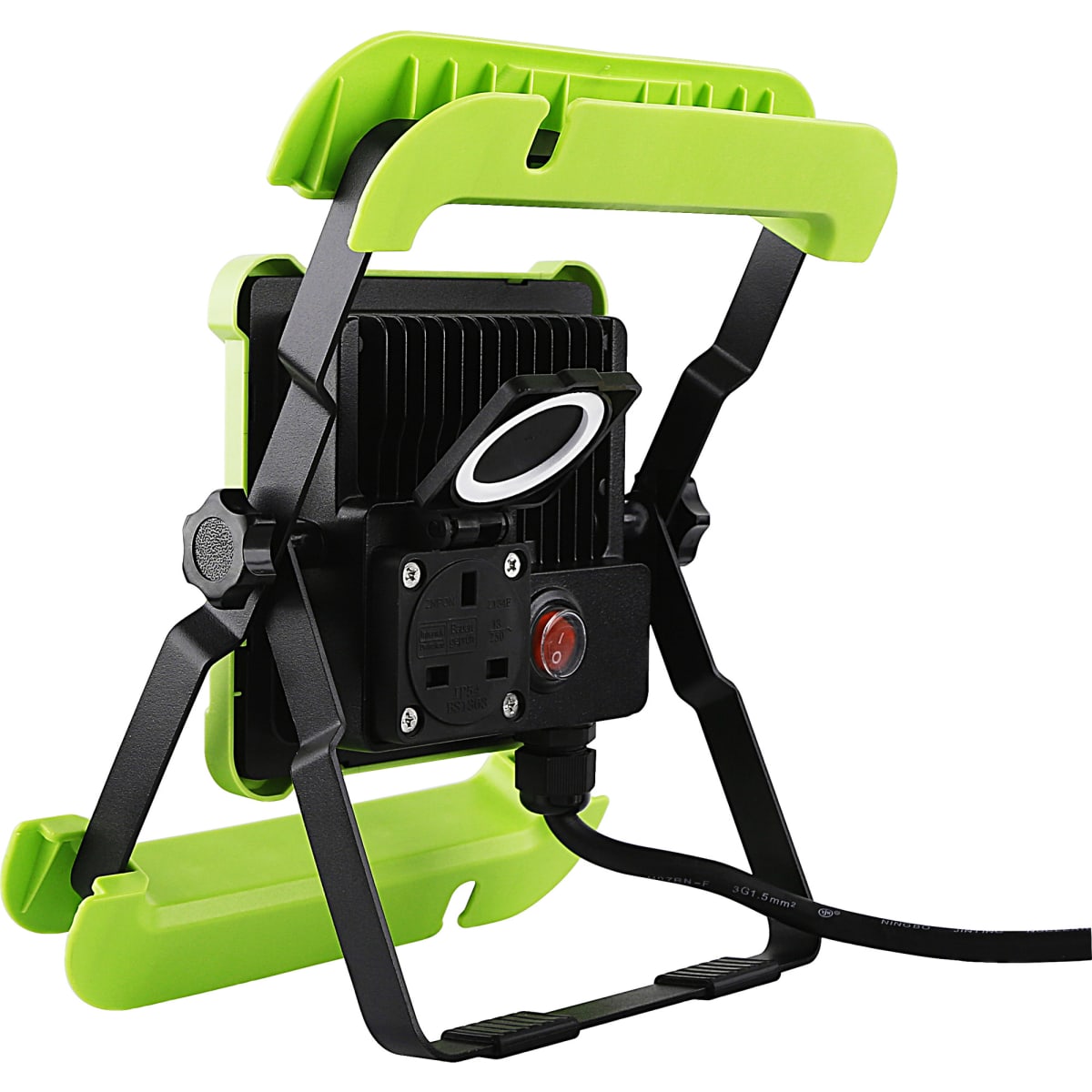 This foldable work light with plug in 13A power socket from Luceco is a portable and versatile lighting solution designed for various tasks. With its efficient LED light, foldable stand, and cable storage, it offers convenience and flexibility. The sturdy aluminium body, complemented by a plastic frame, ensures durability, and its IP54 weatherproof rating makes it suitable for outdoor use. The separate on/off switches allow independent control of the light and the built-in 13A power socket allows you to plug in devices at the same time. Supplied with a 1.5m H05RN-F 3G1.5mm.