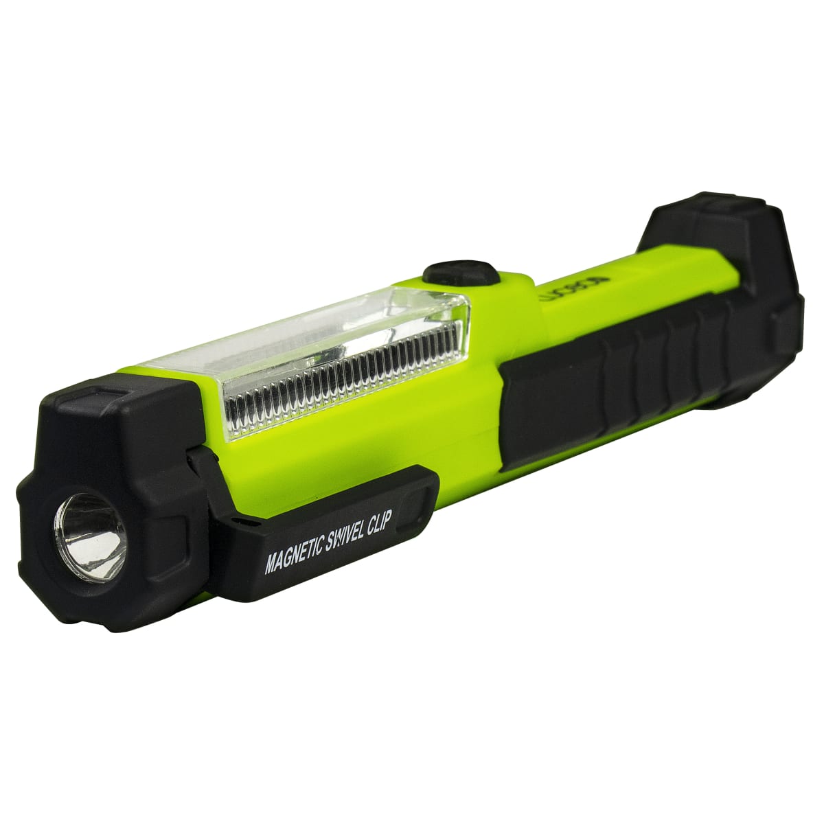 Luceco USB Rechargeable Mini Tilt Torch 1.5W 178 x 28.6 x 25.6mm (H x W x D) Black / Green is durable. Designed to illuminate a specific area, 150 lumens provides adequate visibility for a longer range. Suitable for emergency kits, camping or field purposes. The easy on and off button enables easy access with just a touch. A handy magnet in the bottom base provides easy placement and reduces risk of losing product. Rectangular-make provides wider range of light, covering more area even for the traditional model. Supplied with USB charging cable.