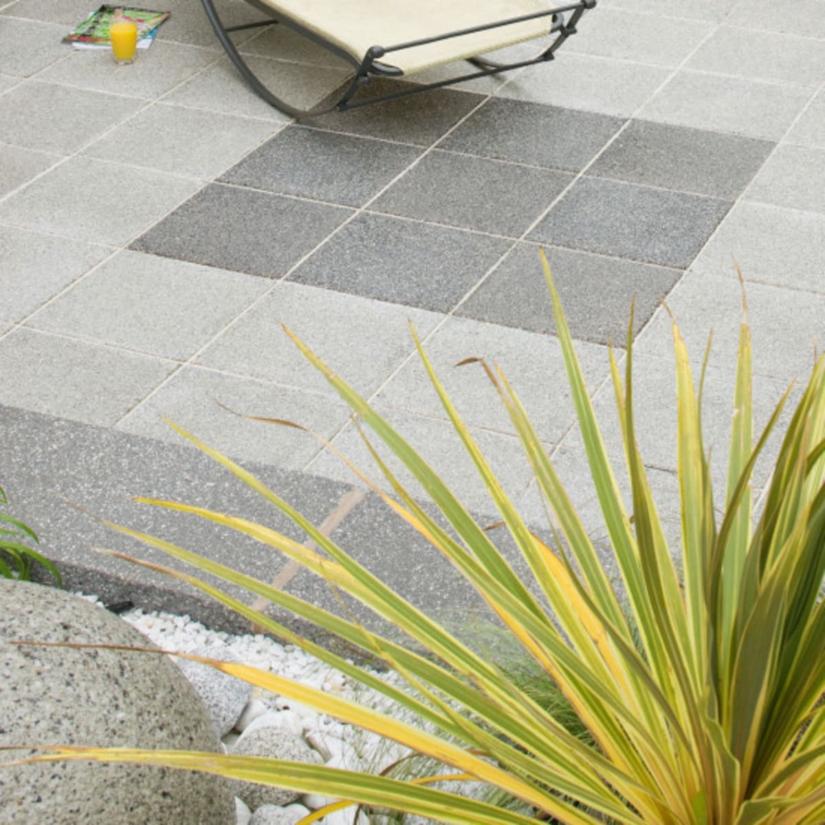 Marshalls Argent Smooth Paving Slab 450 x 450 x 38mm (L x W x T) Light Pack Size 56 is a contemporary paving product ideal for use with bold geometric designs. The blend of British granite aggregate adds a subtle sparkle to the surface, making this a great product for modern garden and patio designs. A coarse textured version is also available, try mixing the two for a great contrasting look.