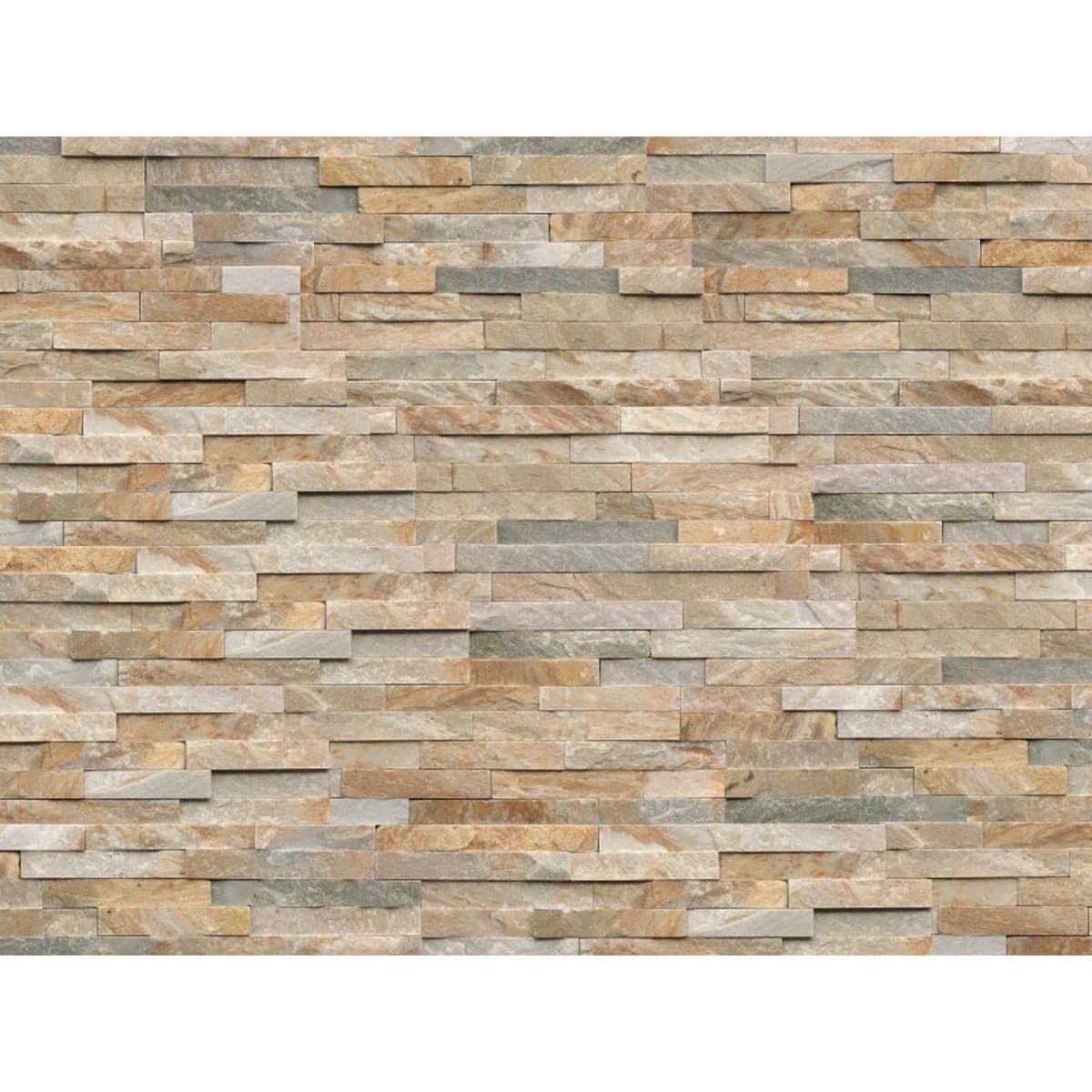 Marshalls Stoneface Drystack Walling 500 x 150 x 22mm (L x W x T) 0.58m² Corner Pack Harvest Mix Quartzite creates stunning contemporary looking walls, quickly and easily. The panels are made in 'z-shape' format, which disguises joint lines for a seamless finish. Available in various slate and quartzite colours.