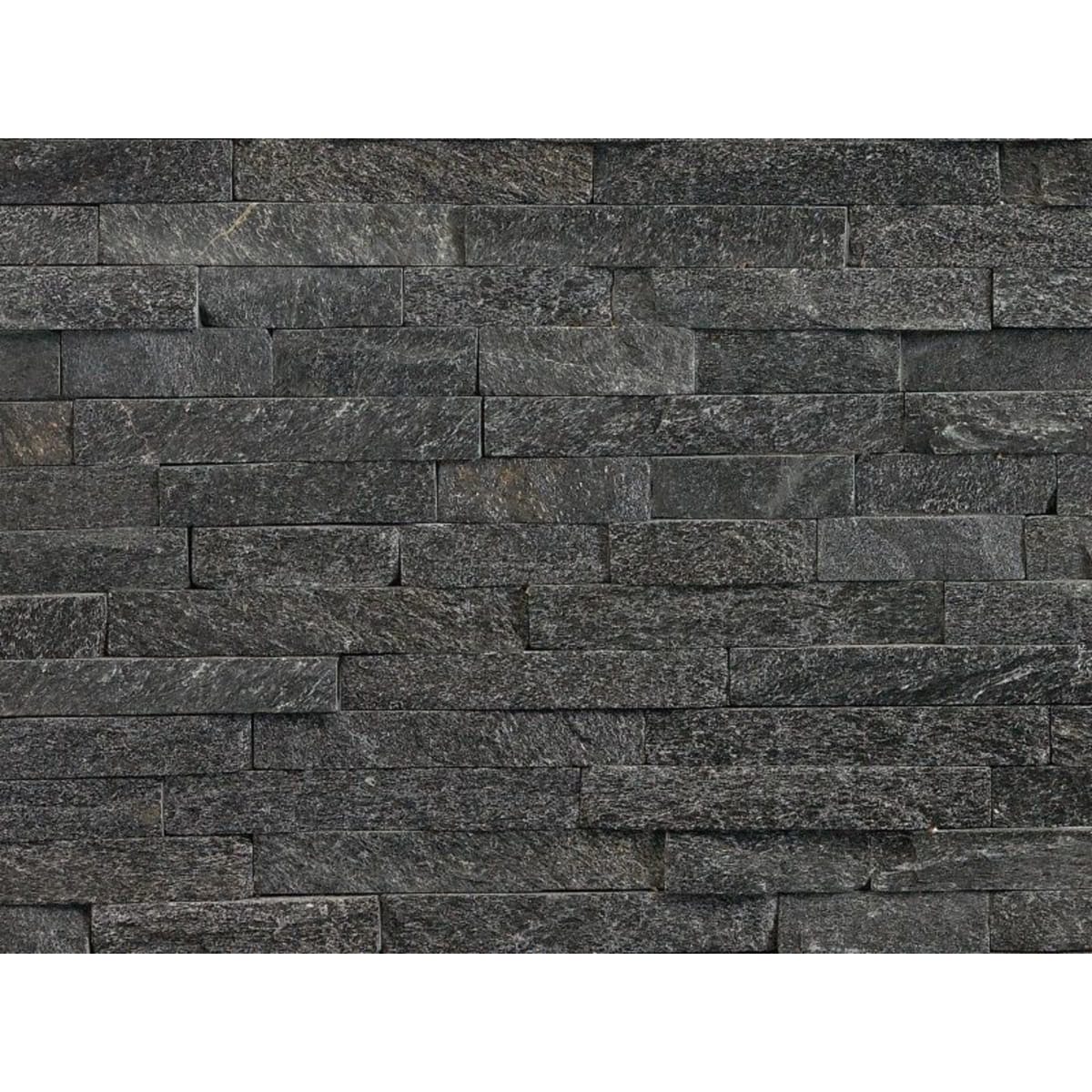 Marshalls Stoneface Drystack Walling 500 x 150 x 22mm (L x W x T) 0.58m² Corner Pack Nero Quartzite creates stunning contemporary looking walls, quickly and easily. The Stoneface walling panels are made in 'z-shape' format, which disguises joint lines for a seamless finish. Available in various slate and quartzite colours.