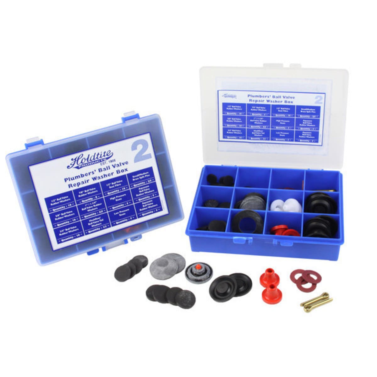 Masefield Ball valve Plumbers Repair Kit Box Blue comes in a handy carry case and is used to fix a leaky ball valve. Washers are used to ensures the best watertight seal in between cistern and pan with other close coupling kit components. Repair box majorly includes 10 pieces of 0.5 inch ball valve rubber washer, seat fibre, 0.75 inch ball valve rubber washer and 5 numbers of high pressure seats.