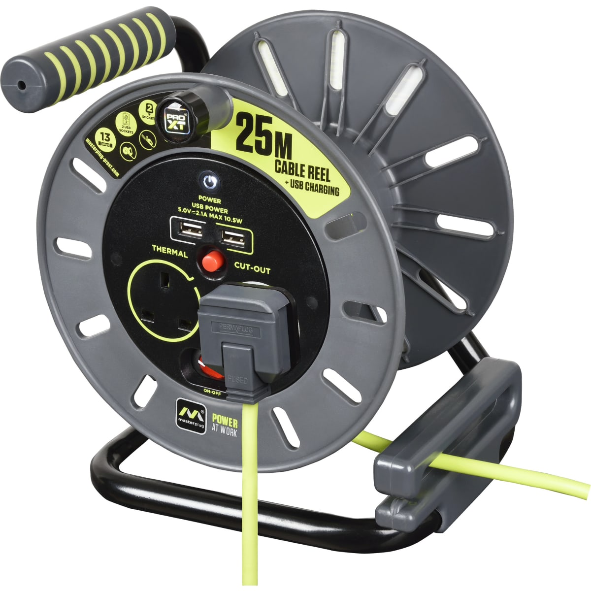 Electrics & Plumbing > Electrical > Cables & Cable Management > Masterplug Two Socket with USB 13A Medium Open Reel with 25m Cable