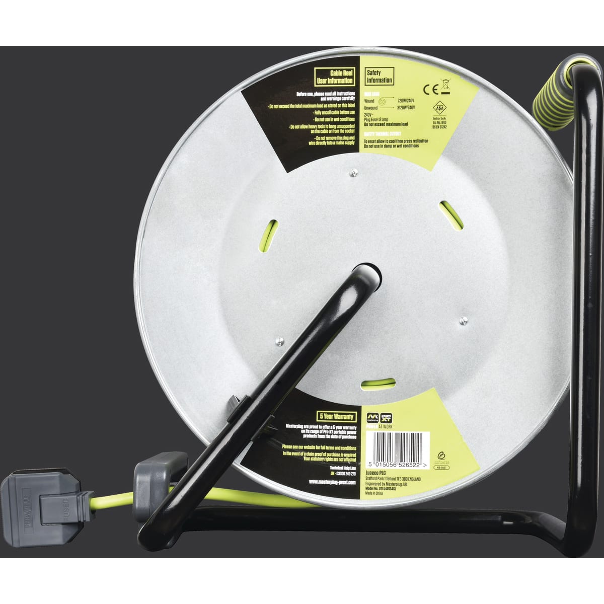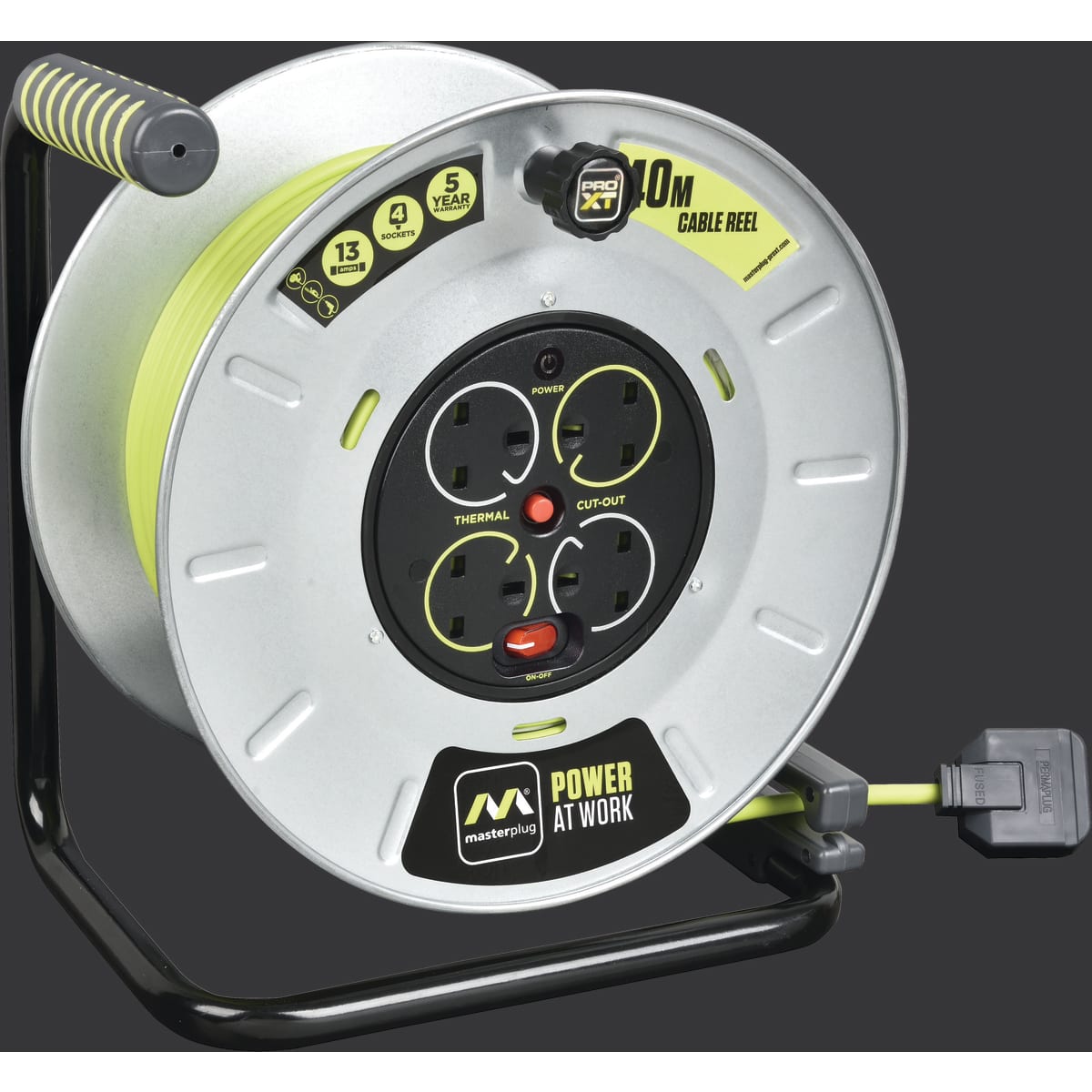 | Product Name | Masterplug Four Socket 13A Large Metal Open Reel with 40m Cable |
