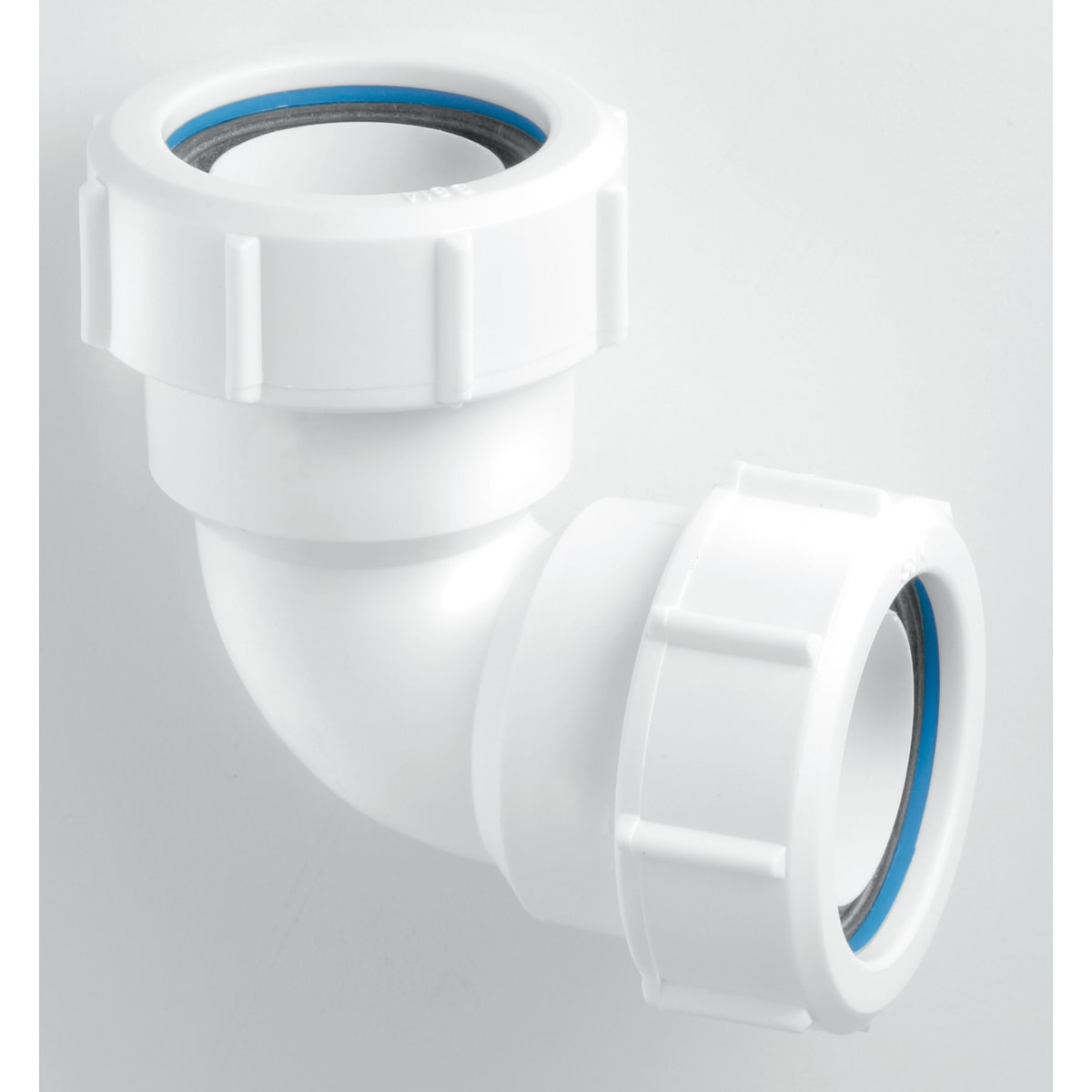 This McAlpine 2" 90° bend includes connections with moulded internal sleeves designed to centre and support the pipe. Multifit and friction washers are used to create a secure seal between the pipe and the fitting wall of the fitting. Where a plastic pipe is undersized or out of shape it may be necessary to warm the end, enabling it to be pushed over the internal sleeve.