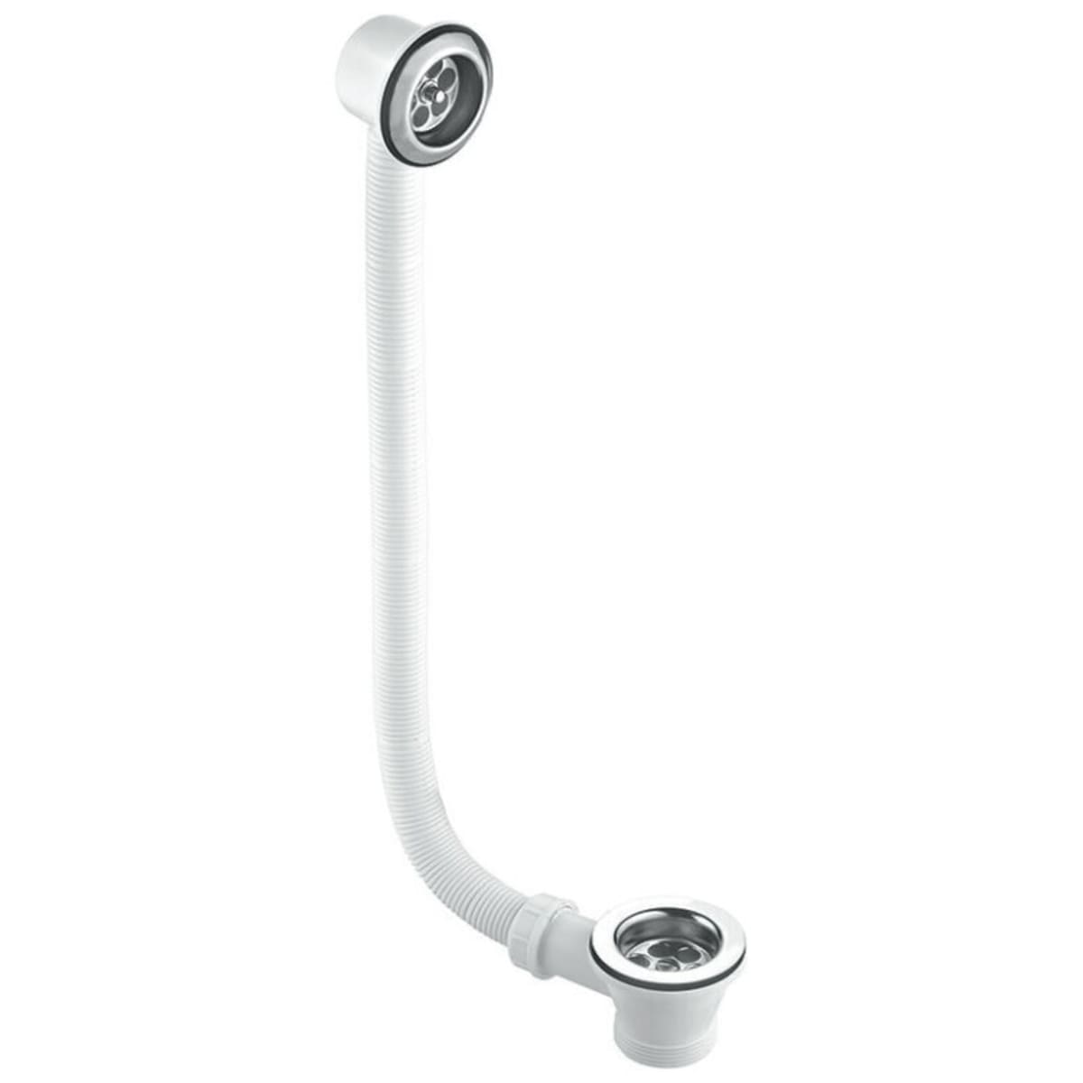 Manufactured to a high standard using white polypropylene (PP), this McAlpine combination bath assembly includes a waste, plug, chain and overflow. It is supplied with 1½" x 70mm stainless steel flange connections.