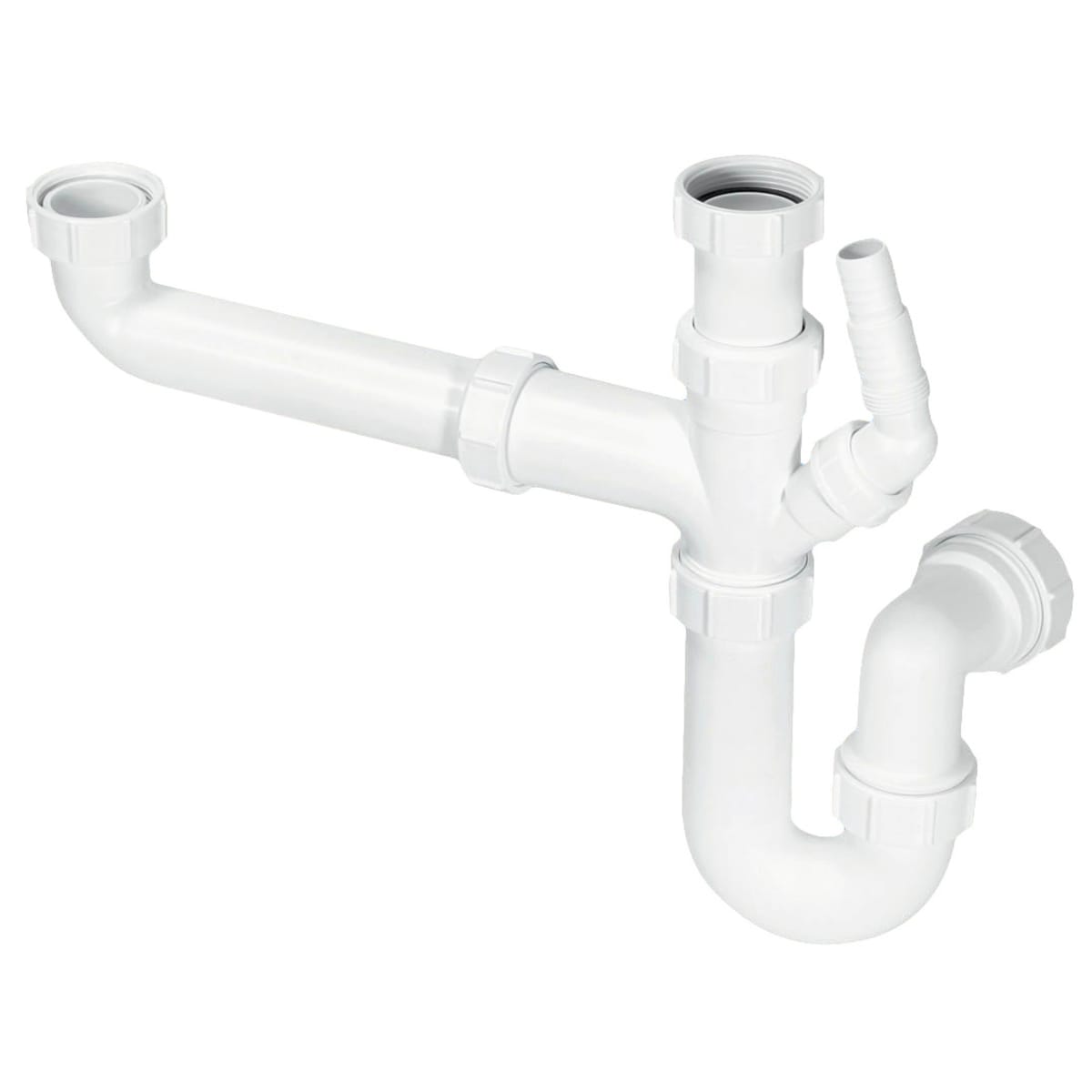 The 1 1/2" Standard Bowl and a half plumbing kit with one connection for the discharge from domestic appliance. Available with 1 or 2 nozzles swivel 'P' trap to accept discharge from domestic appliances and suitable for almost all British and European sinks.
