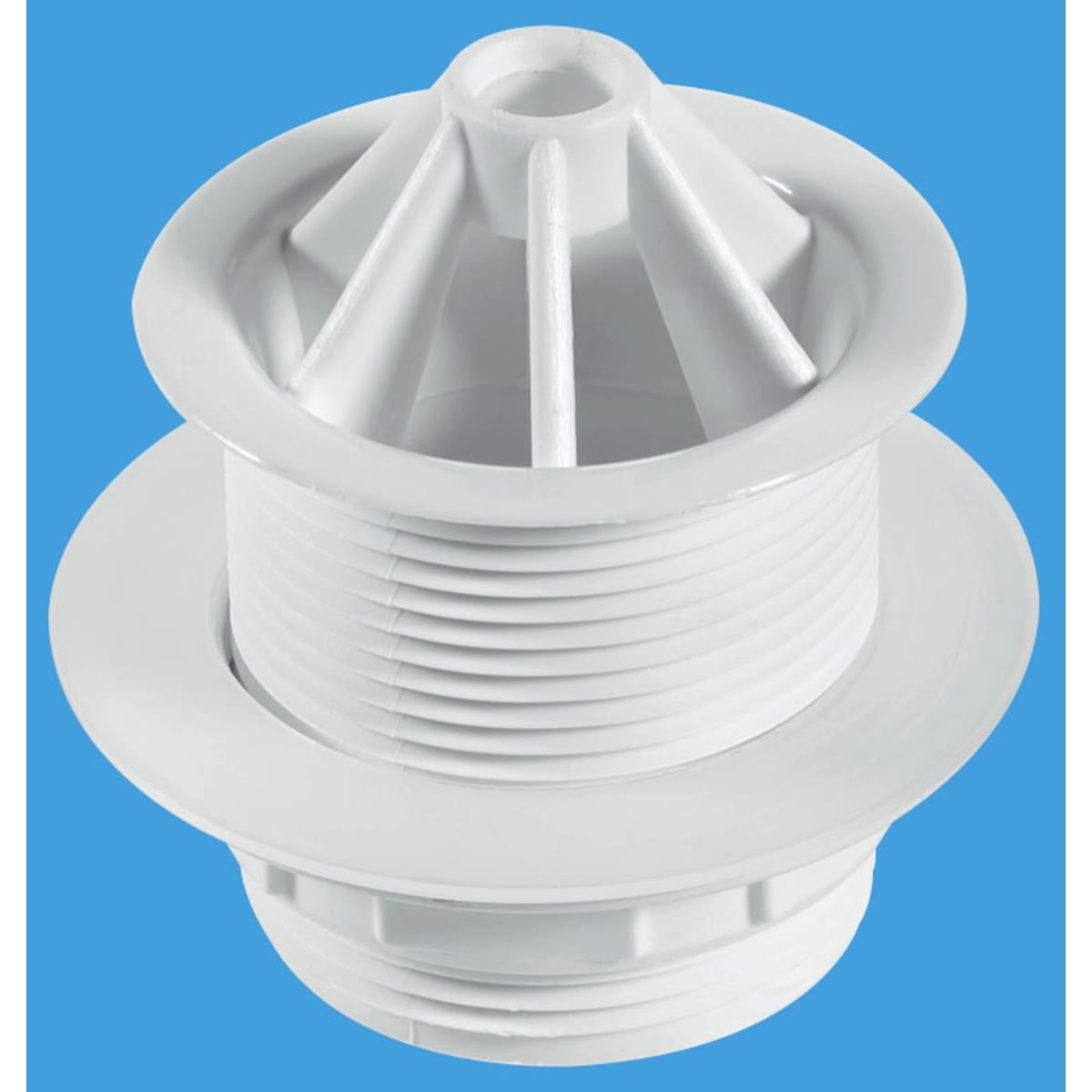 McAlpine 1½" Urinal White Plastic Domed Flange x 2" Tail. This is a Backnut Model and a 60mm White Plastic Domed Flange. Manufactured in Polypropylene.