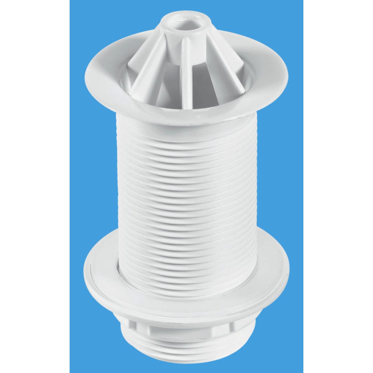 McAlpine 1¼" Urinal White Plastic Domed Flange x 3½" Tail. This is a Backnut Model and has a 60mm White Plastic Domed Flange. Manufactured in Polypropylene.