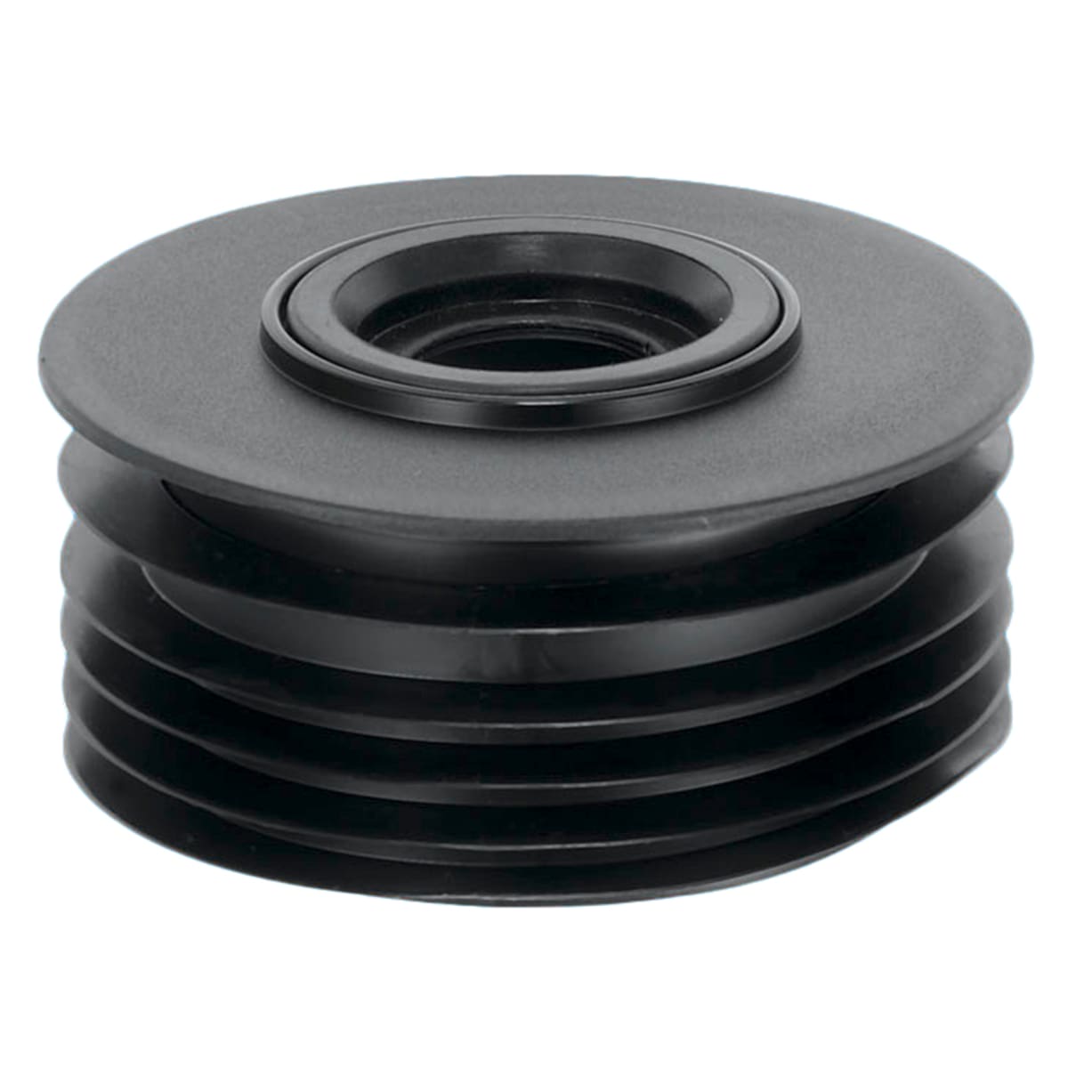 McAlpine Black Polypropylene Drain Connector with sealing ring to fit BS EN 1451:2017 and BS EN 1329-1-2020 plastic waste pipe. Finned seal spigot for internal connection to 4"/110mm cast iron, plastic or clay. Ideal for low level connections. O' seal socket fits 4"/110mm pipe to BS 4514. 4"/110mm x 1¼" and 1½".