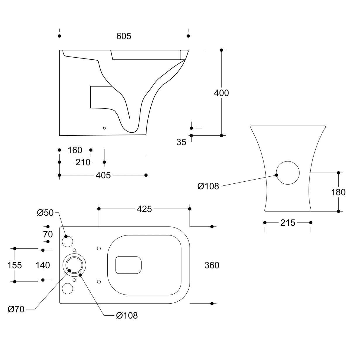 - Distance from soil pipe spigot to wall: 164mm