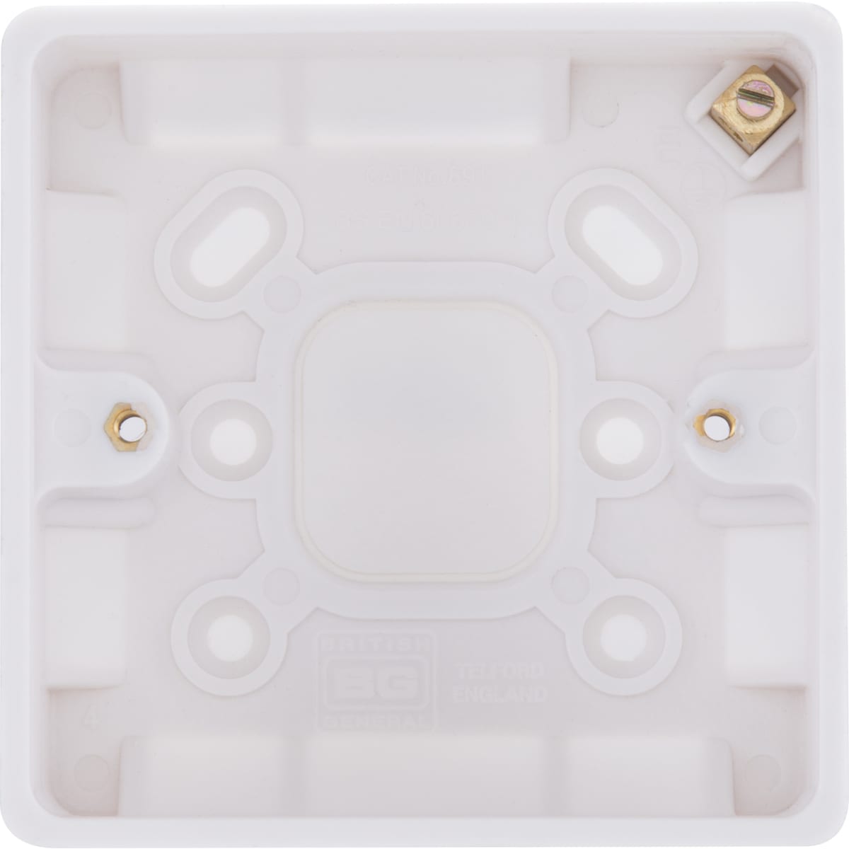 - Single Surface Pattress Box: Compatible with wiring accessories from the BG Nexus 800 Series range. Rounded edges for a modern look.