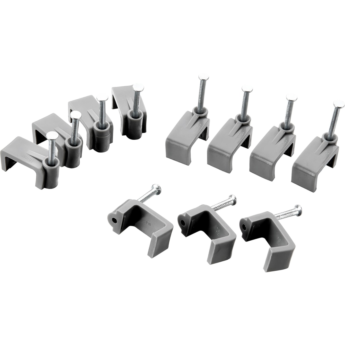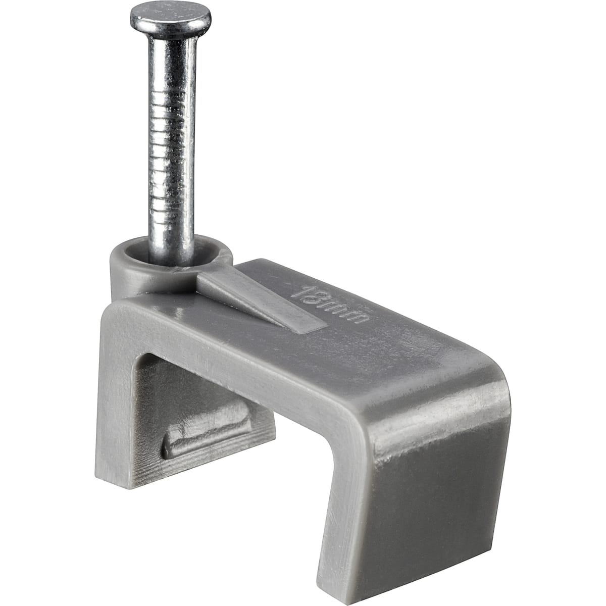 For fast installations of cables. Suitable for use wood, masonry and compressed board. Grey Colour. Manufactured from strong, impact resistant polypropylene. Each clip includes integrated zinc coated nail.