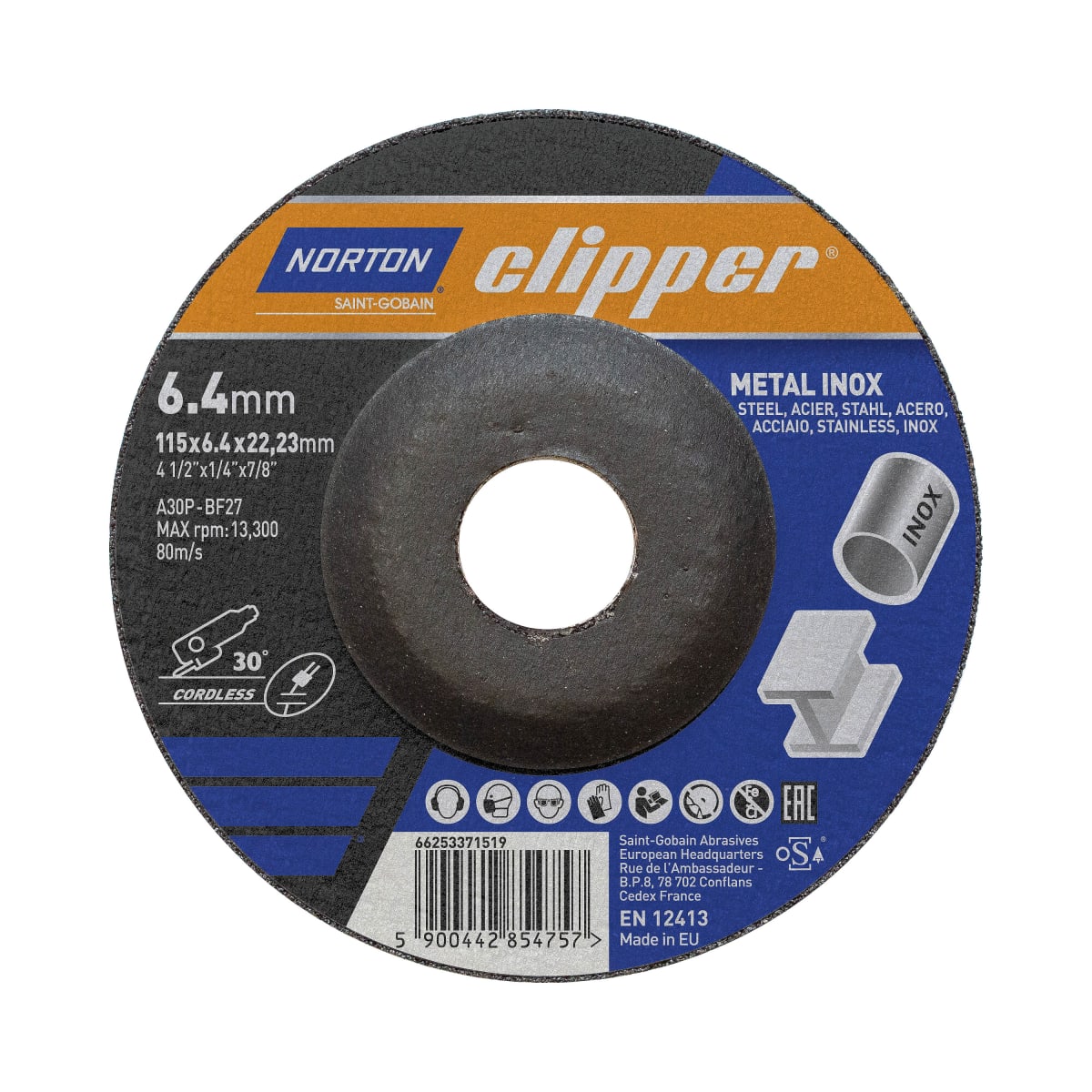 | Product Name | Norton Clipper Metal Grinding Disc 15 x 6 x 22.23mm |