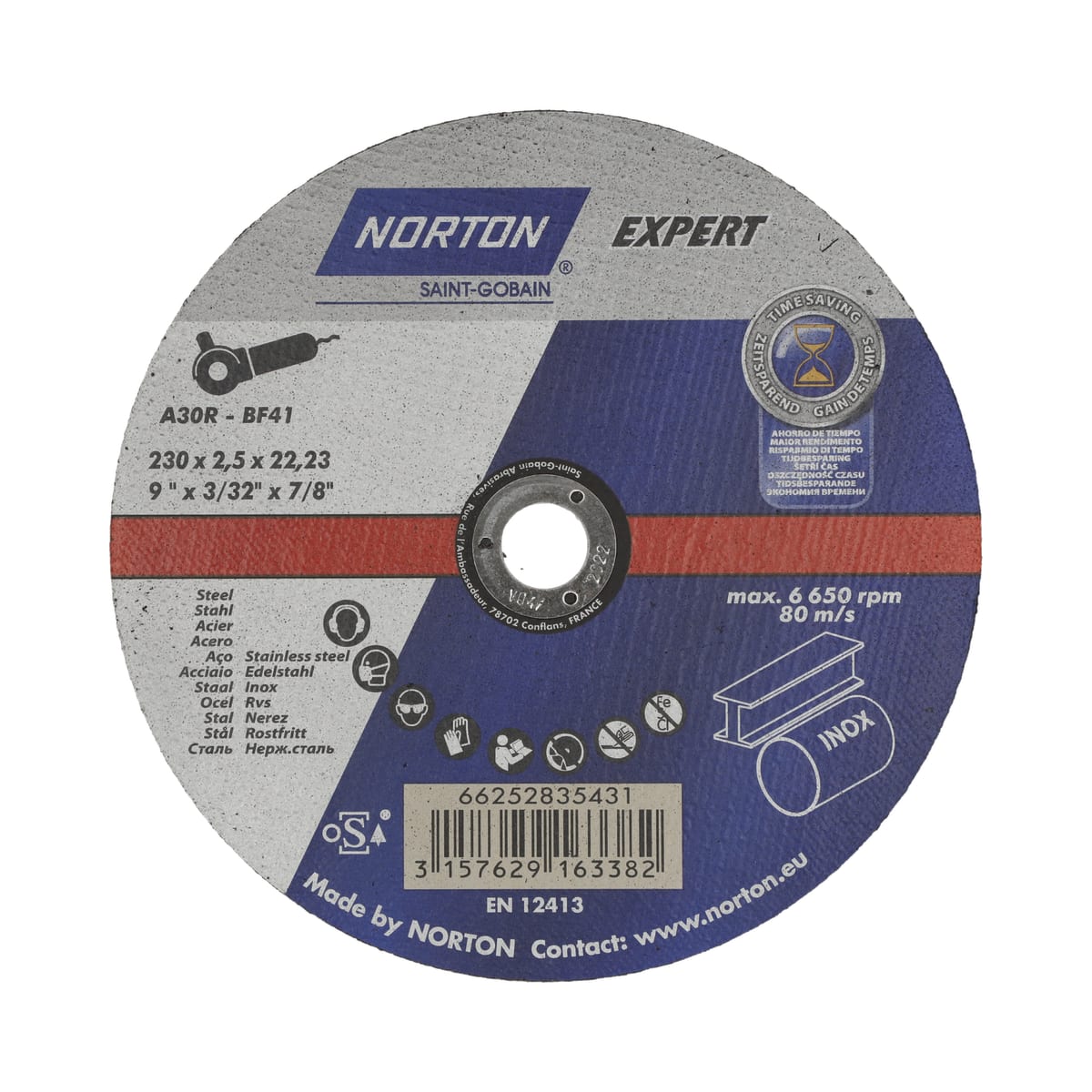 | Product Name | Norton Steel-Inox Flat Metal Cutting Disc 230 x 2.5 x 22.23mm |