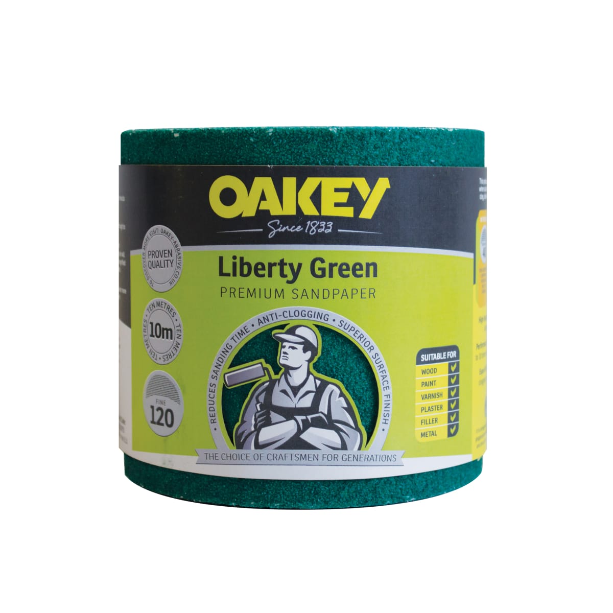 Oakey Liberty Green sandpaper rolls are the professional decorator’s first choice when sanding - it works faster, lasts longer and fails to clog; delivering everything a true tradesperson requires.Constructed from premium grade aluminium oxide and a heavy E-weight backing, Liberty Green is self-sharpening, anti-clogging, extremely durable and lasts up to 10 times longer than standard sandpaper. Perfect for everyday decorating or even for heavy duty applications.