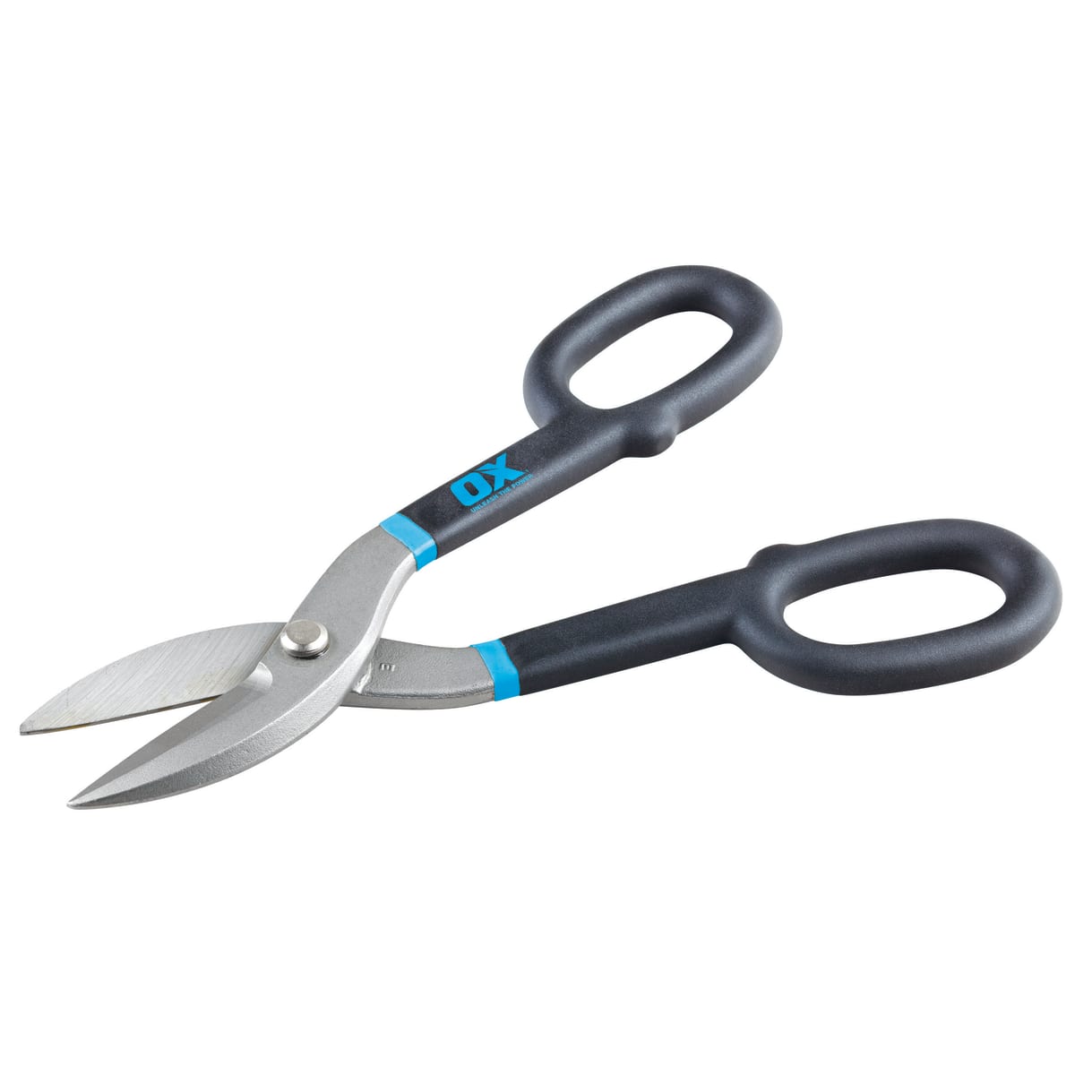 OX Pro Straight Tin Snips 254mm (10in) made from hardened steel for durability and a clean cut. It also features a non-slip comfort grip handle.