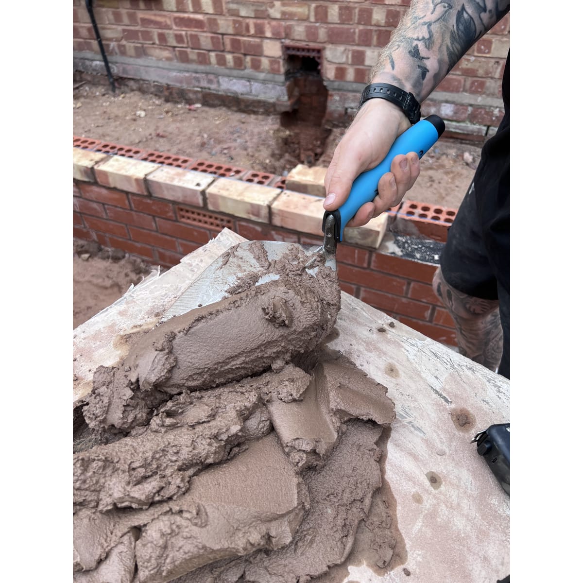 - Hard end handle for tapping in bricks
