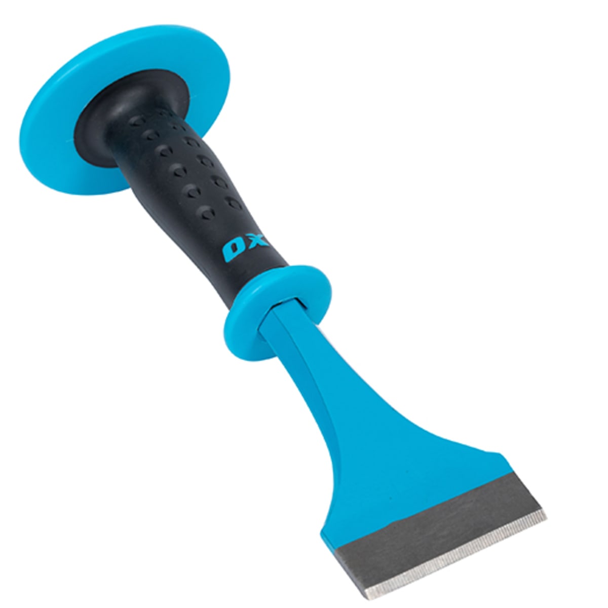 The OX Pro Floor Chisel - 3" x 11" makes removing tongue and groove flooring easy with its soft grip handle and ual hand guard. Its made from tough forged chrome vanadium steel.