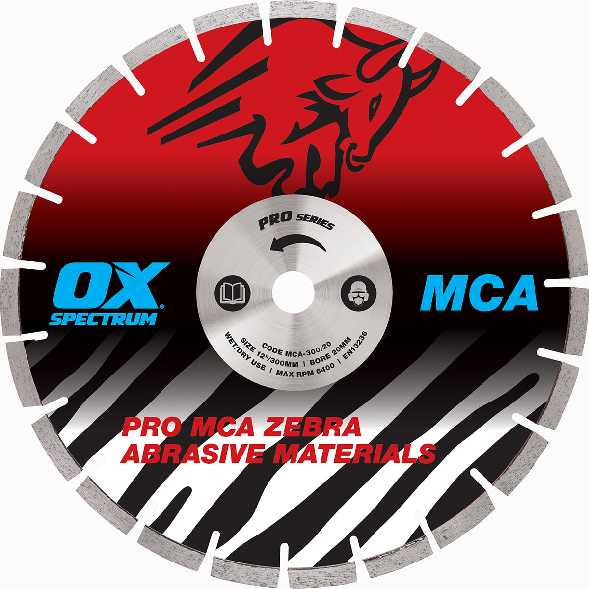 OX Spectrum Pro Zebra Dia Blade Abrasive 300/20mm is a high performance dual purpose blade with a 10mm segment and has wedge undercut protection. It cuts through abrasive building materials, concrete products, roof tiles, blocks, floorsaw concrete, dual concrete and asphalt.