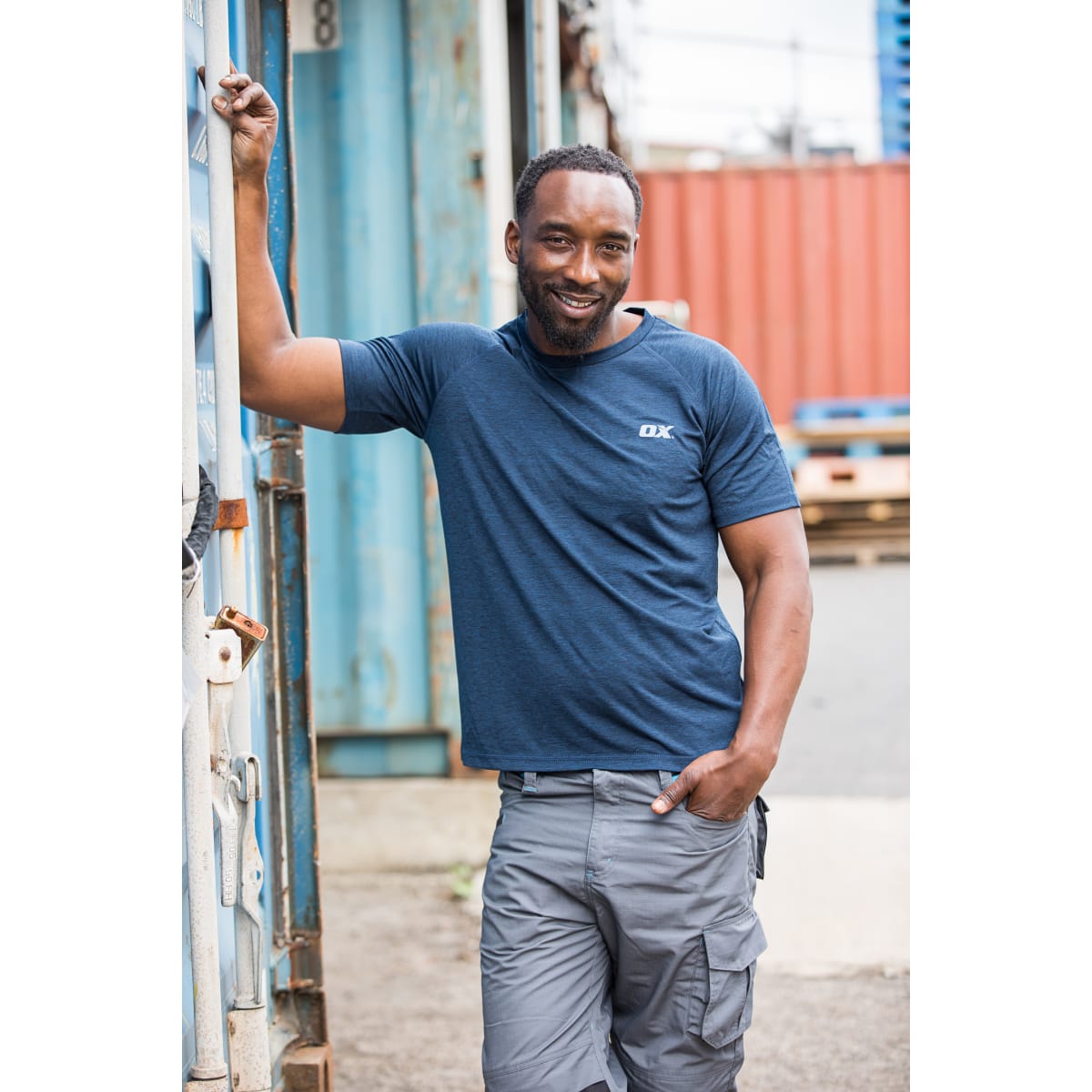 Tools & Fixings > Safety & Workwear > Clothing & Footwear > OX Tech Crew T-Shirt Navy Size L
