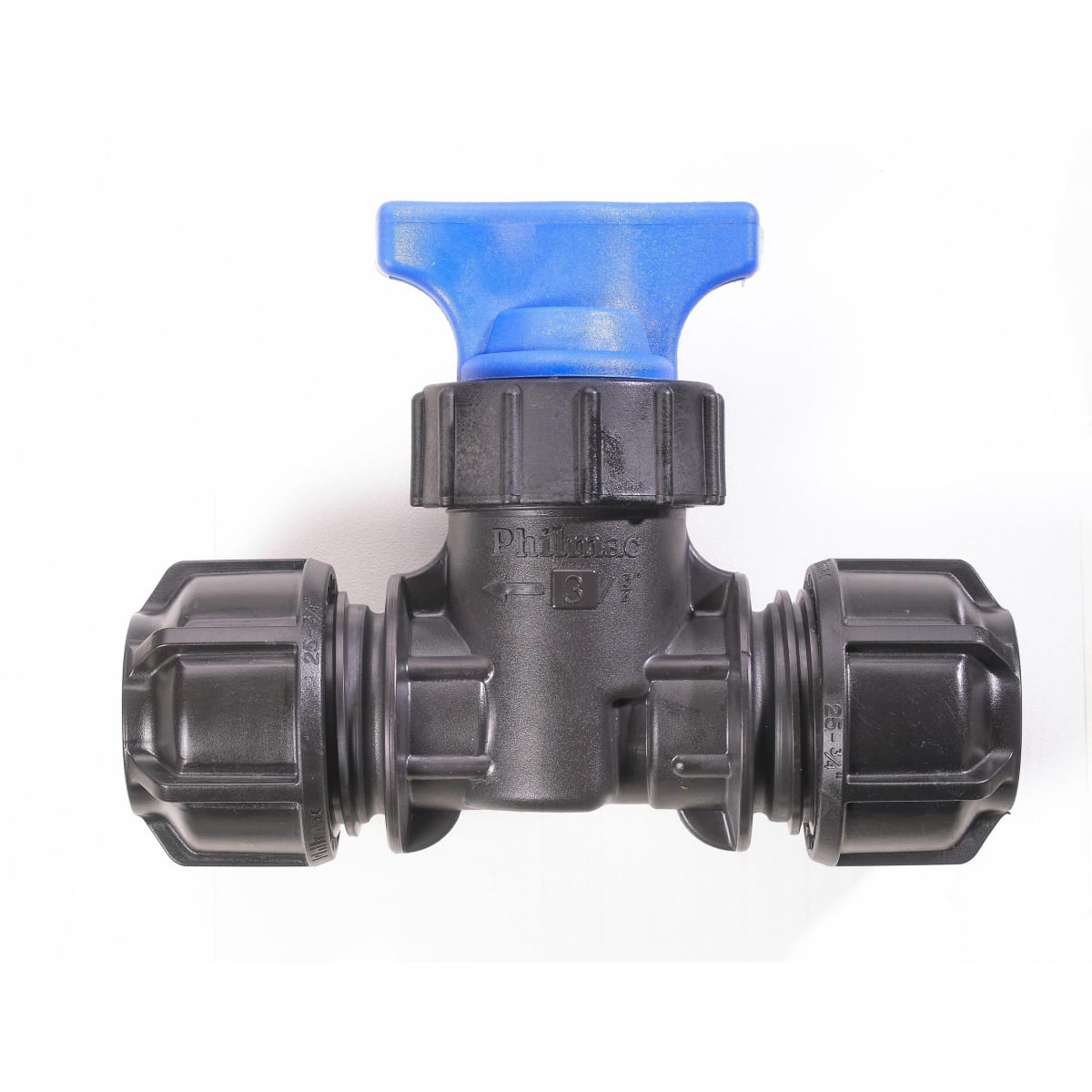 The Philmac Stopcock 20mm Black Metric/Imperial is a hard-wearing plastic compression fitting used for water pipes. This is a slide-and-tighten technology that makes it easy to install, no tools required. It is mainly used for the drinking water system and this water pipe fitting valve is built to stay intact also in harsh outdoor conditions. It is designed with three turns from off to on and provides good control and completely eliminates the water hammer effects. This is ideal for use in agriculture and irrigation. These fittings are used for domestic, commercial and industrial applications.