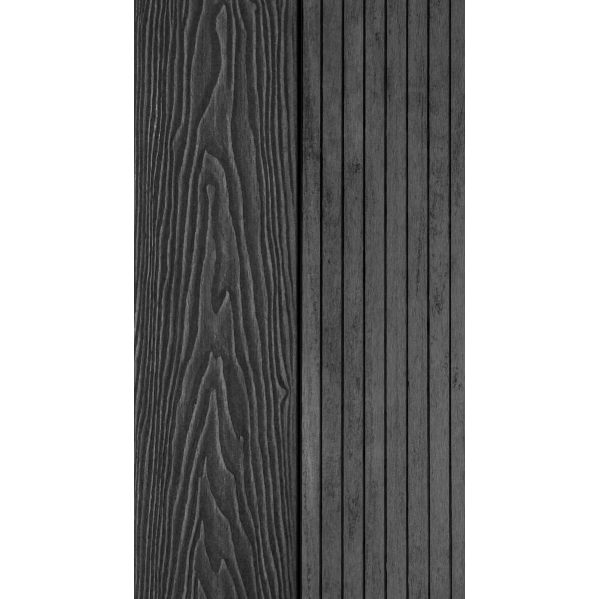This composite decking product has a woodgrain effect pattern on one side and a colour matching traditional grooved finish on the reverse.