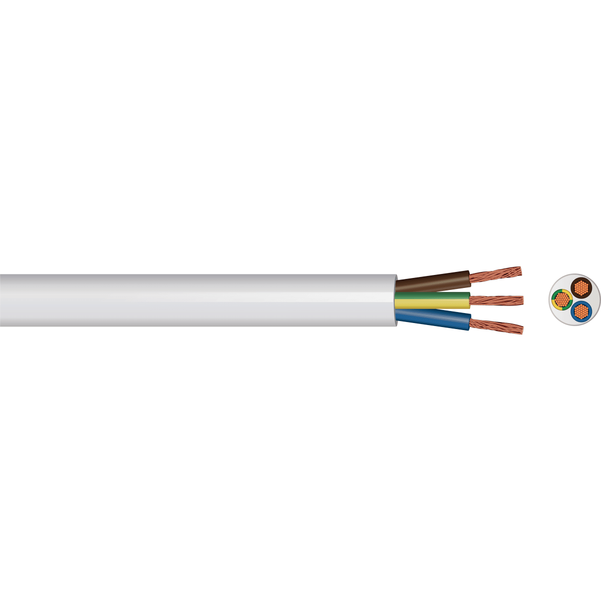 Electrics & Plumbing > Electrical > Cables & Cable Management > PITACS 3 Core Heat Resistant Flexible Cable 3093Y 0.75mm² White 10m