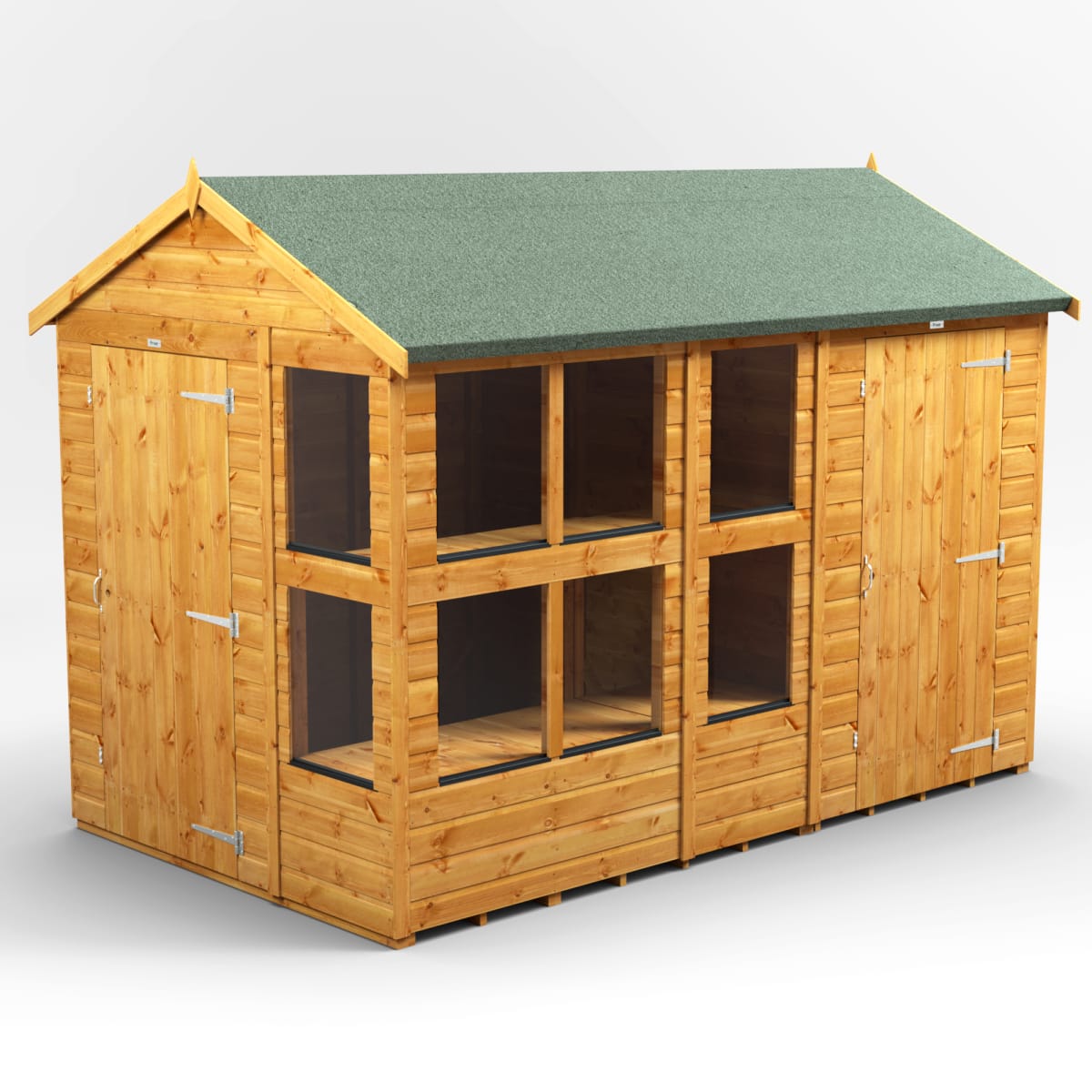 Landscaping > Garden Buildings & Structures > Garden Sheds > Power Sheds 10 x 6 Power Apex Potting Shed Combi including 4ft Side Store