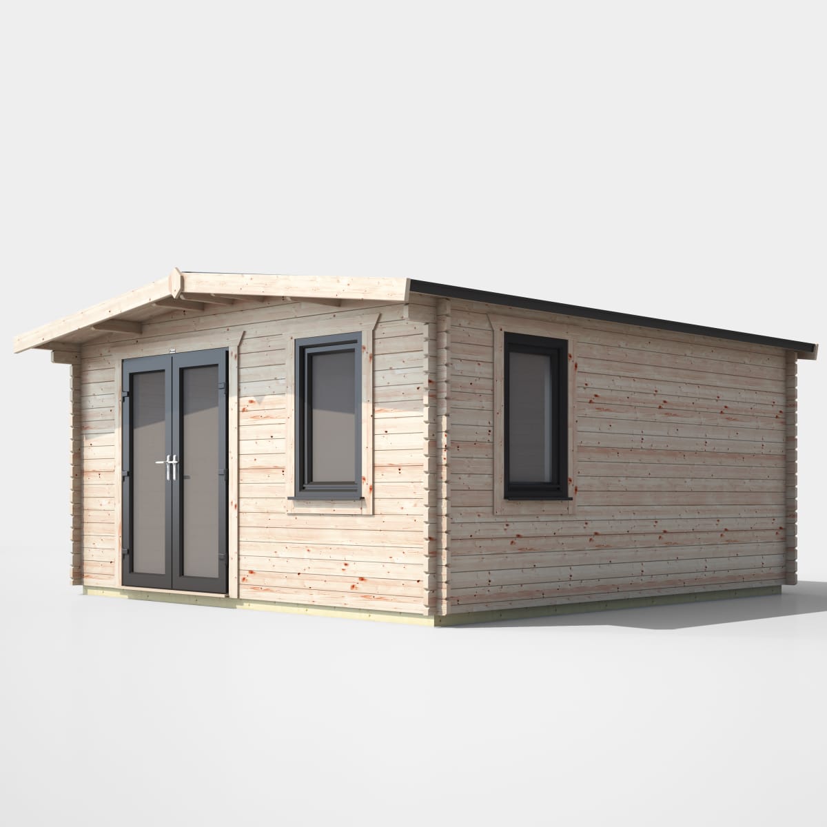 Landscaping > Garden Buildings & Structures > Garden Rooms & Summerhouses > Power Sheds 16 x 14 Power Chalet Log Cabin Doors to the Left 44mm