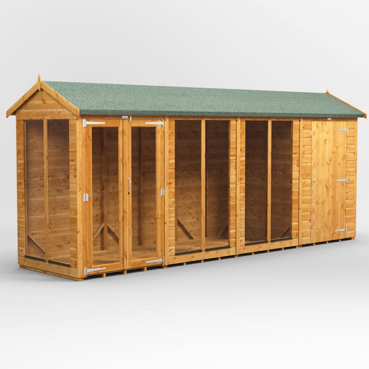 Landscaping > Garden Buildings & Structures > Garden Rooms & Summerhouses > Power Sheds 16 x 4 Power Apex Summerhouse Combi including 4ft Side Store