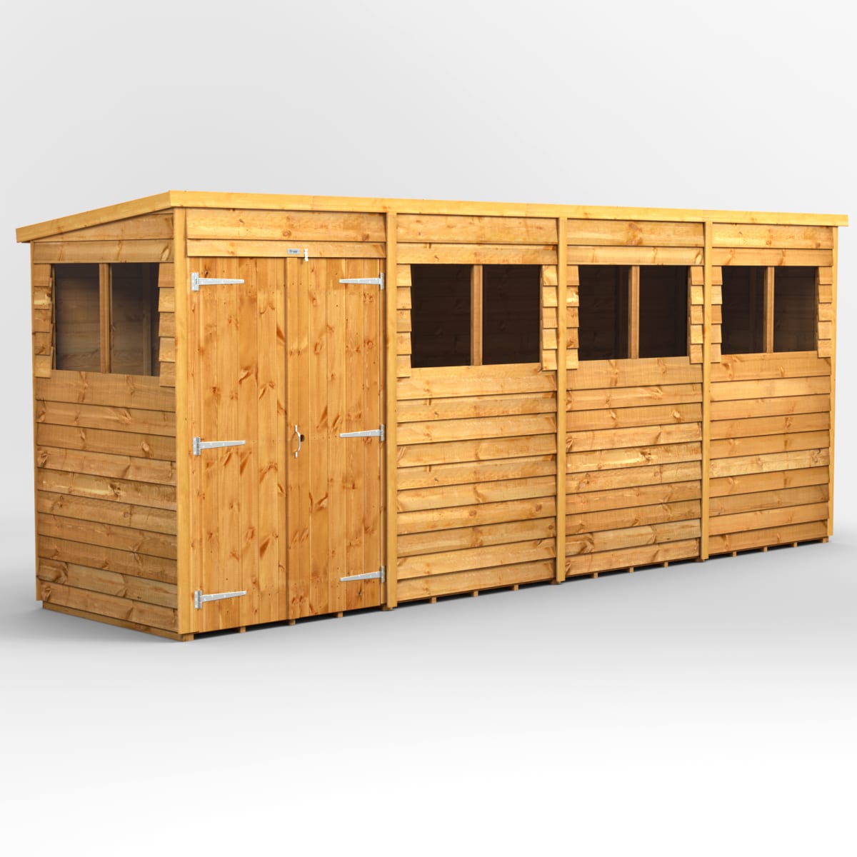 Landscaping > Garden Buildings & Structures > Garden Sheds > Power Sheds 16 x 4 Power Overlap Pent Double Door Garden Shed