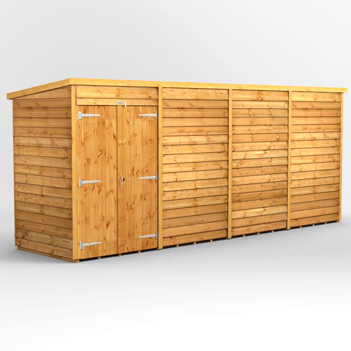 Power Sheds 16 x 4 Power Overlap Pent Windowless Double Door Garden Shed
