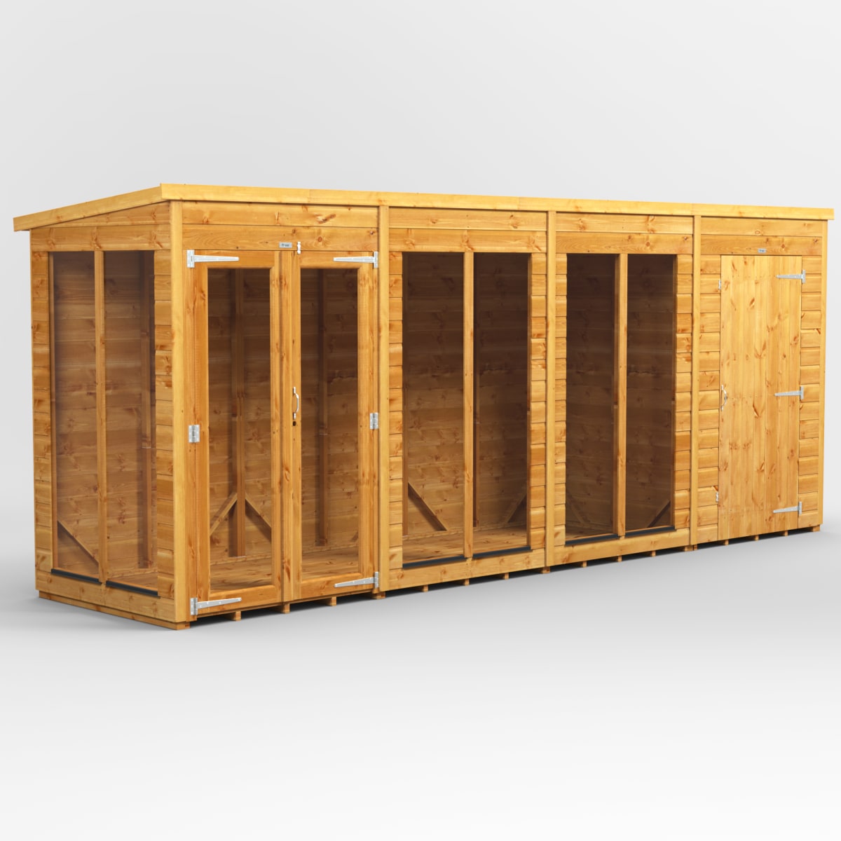 Landscaping > Garden Buildings & Structures > Garden Rooms & Summerhouses > Power Sheds 16 x 4 Power Pent Summerhouse Combi including 4ft Side Store