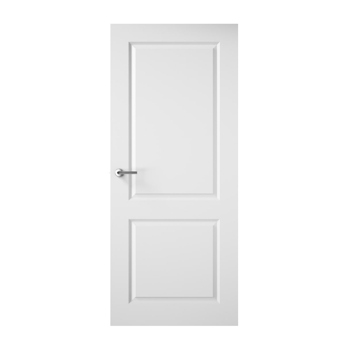 Quality white base coated moulded Panel Facings with smooth faces suitable for on-site painting. Complementary glazed options available as well as mobility and fire door options available. Two panel smooth 457mm (1' 6") and 533mm (1' 9") doors have reduced stile widths. Handles for illustration purposes only.