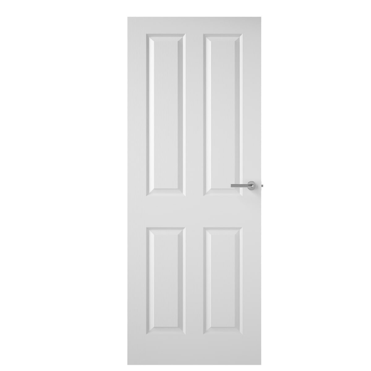 Quality white base coated moulded panel facings with textured faces suitable for on-site painting. Complementary glazed options available with mobility and fire door options. 526mm & 457mm (1' 6") & 533mm (1' 9") doors supplied with two panels. Handles for illustration purposes only.