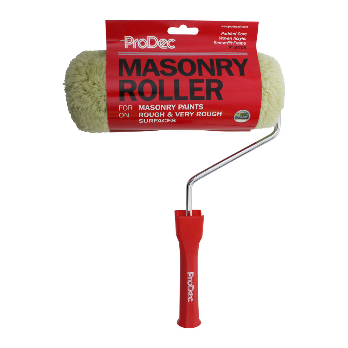 The ProDec Masonry Roller and Frame Kit is the most popular heavy-duty masonry roller, made for trade and contractors to paint very rough surfaces. ProDec uses hi-tech thermobonding to fuse the roller fabric to the core and prevent it detaching even with heavy-duty use. It is suitable for a wide range of paint and surface types. The product gives high-speed application from 9in large diameter head complete with 9in stick system frame. The pack contains 9in stick roller frame, 4in flat masonry brush and 11in heavy-duty tray. The highly durable padded roller is suitable for pebbledash, brickwork and textured renderings. Prodec is one of several brands owned by Rodo. ProDec has the widest range of professional painting and decorating tools from paintbrushes to rollers, dustsheets to tools, tapes to abrasives.