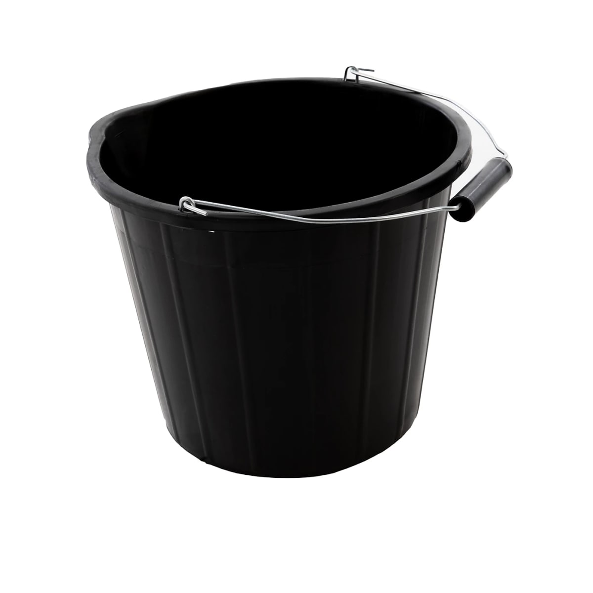 3 Gallon Black Builders Bucket with Galvanised Metal Handle. A multipurpose bucket made from durable plastic, ensuring all liquids and contents are safe when being transported or in use.