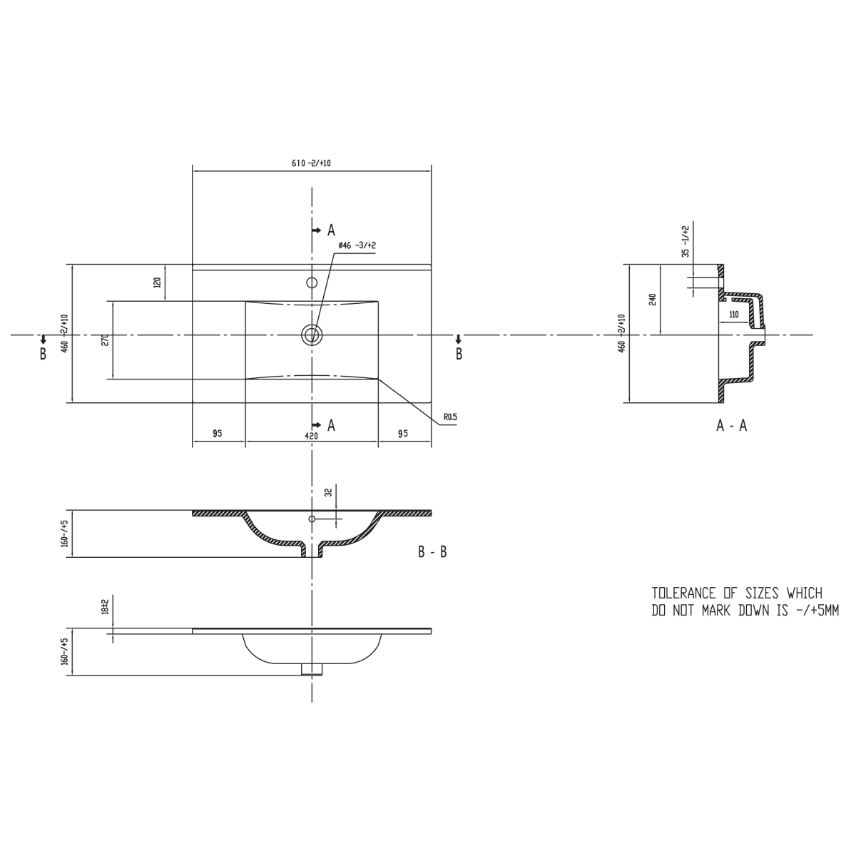 - Includes thin edge ceramic 1TH basin