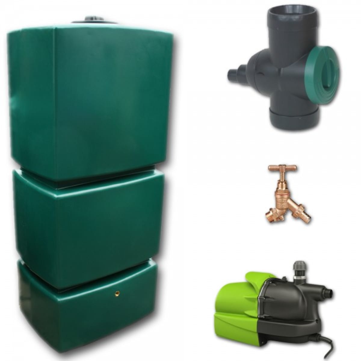 Rainwater Harvesting 800 litre tank water butt system to suit small to medium size garden. The British manufactured tank and pump are tried and tested for long lasting, reliable performance in the variable British climate. This garden system includes the components for collection, storage and distribution of rainwater around the garden.