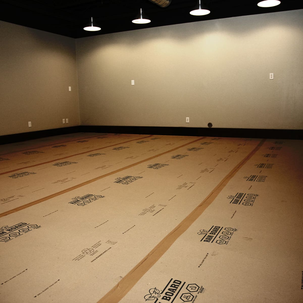 Ram Board is a heavy duty, breathable, temporary floor protection engineered for contractors. Designed with cost and efficiency in mind, it lays out fast and is reusable.