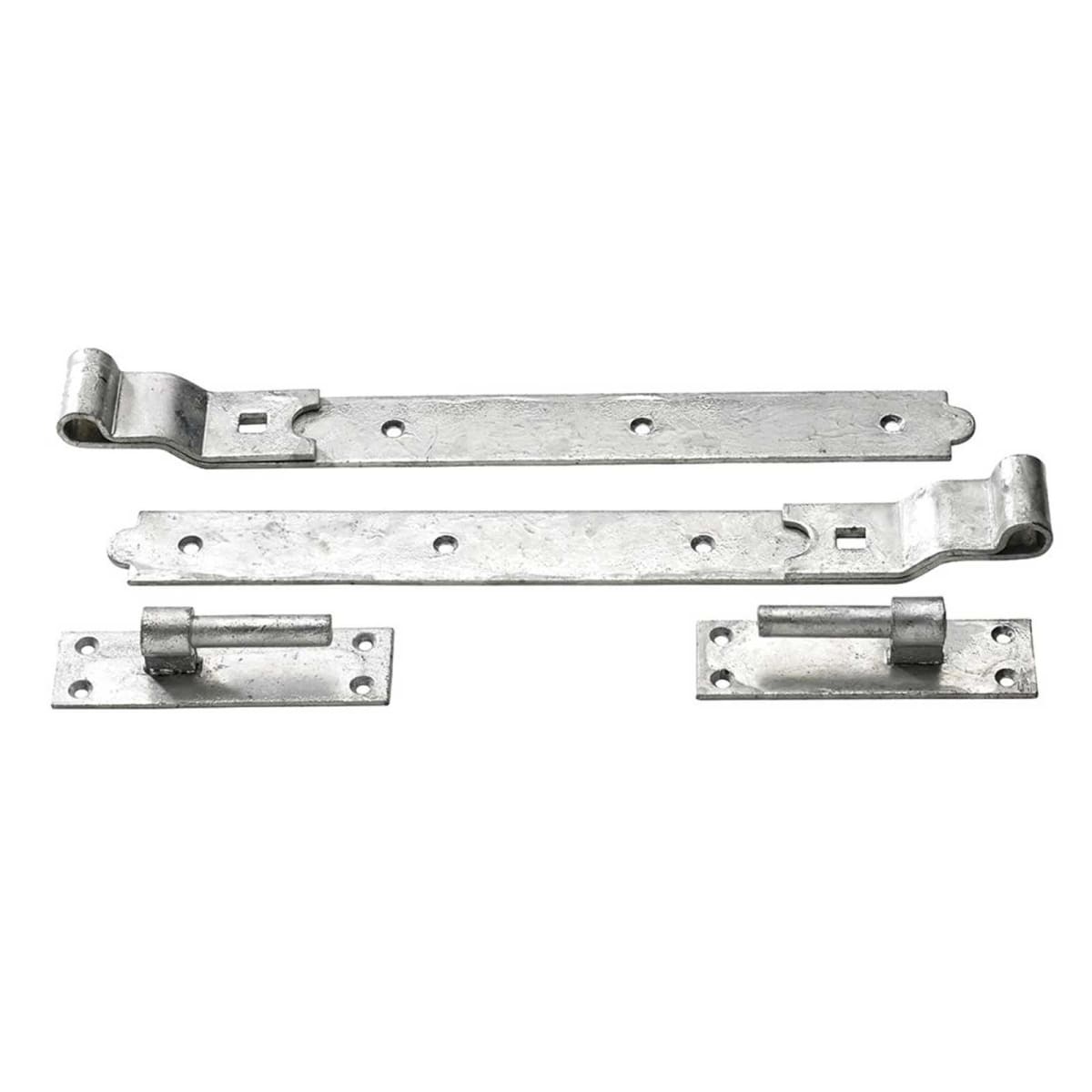 Hinges used primarily externally for large doors and gates. Cranked keep the post flush with the door/gate.