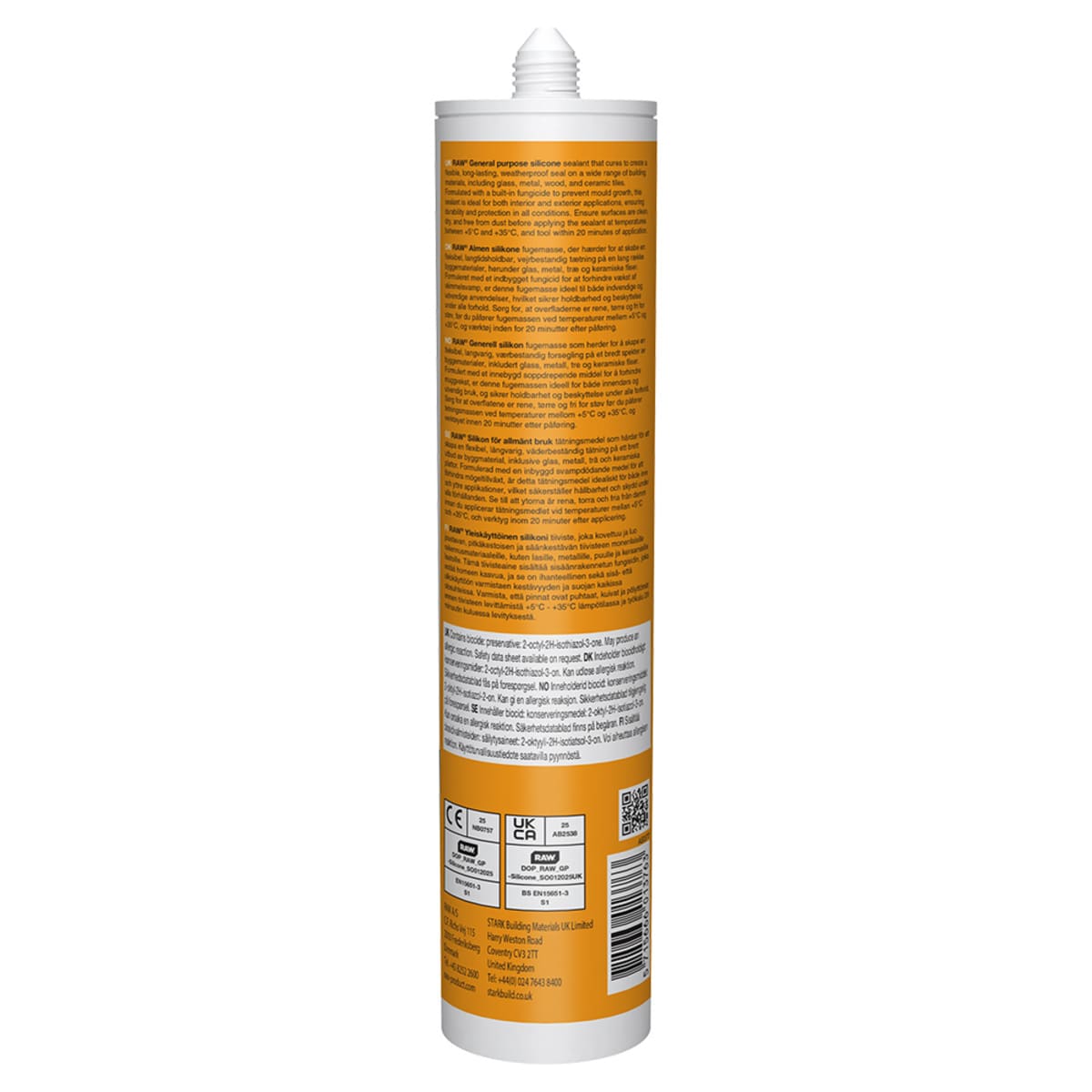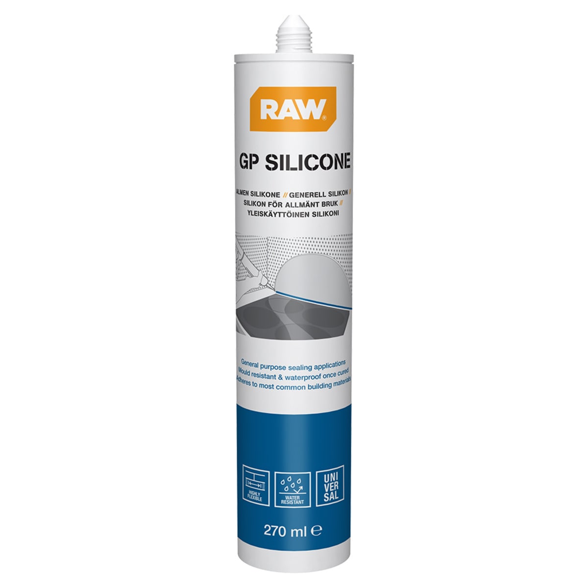 RAW® General purpose silicone sealant that cures to create a flexible, long-lasting, weatherproof seal on a wide range of building materials, including glass, metal, wood, and ceramic tiles. Formulated with a built-in fungicide to prevent mould growth, this sealant is ideal for both interior and exterior applications, ensuring durability and protection in all conditions.