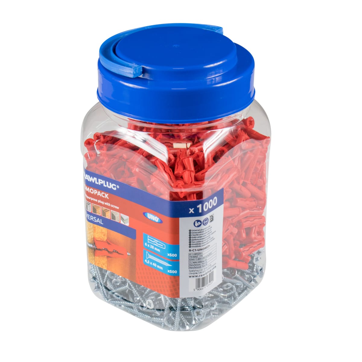 | Product Name | RAWLPLUG Uno Plugs 6mm Red Jar of 1000 |
