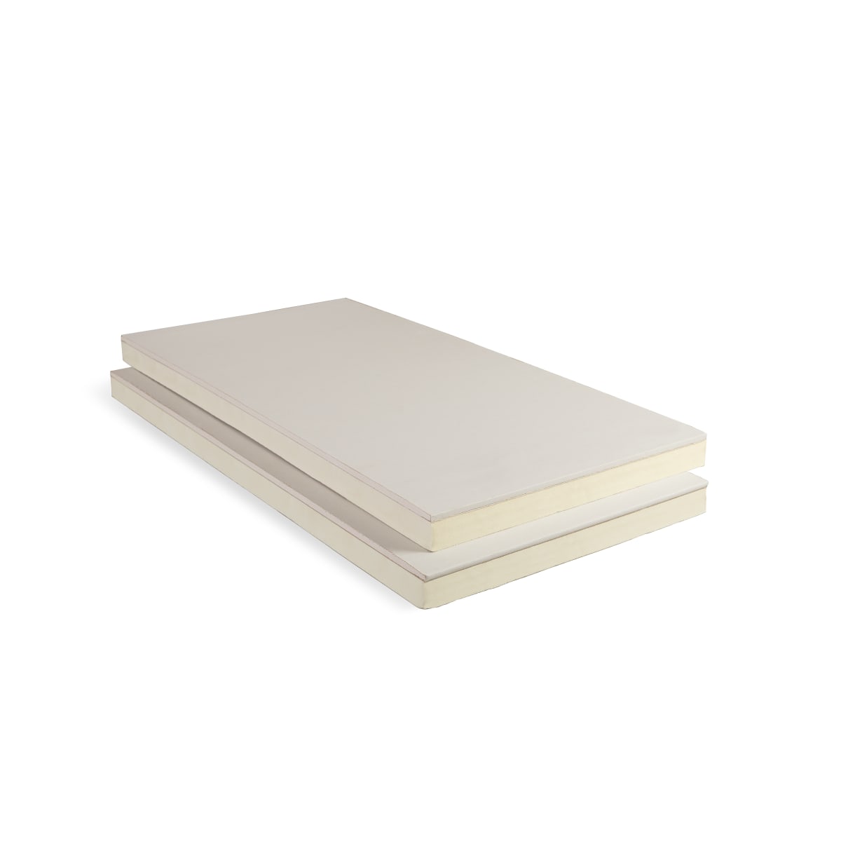 The Recticel Eurothane PL PIR Board 2400 x 1200 x 77.5mm (L x W x T) combines in itself an insulation and plasterboard in one single, handy and durable board. Suitable for internal wall insulation and pitched roof applications, this insulation board is consistently sized with extremely tight tolerances, ensuring thermal bridging is minimised. Factory bonded, the plasterboard provides optimum board dimensions and optimum adhesion between layers.
