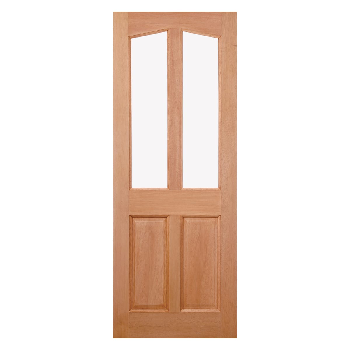The elegant Richmond door design in hardwood features two raised shaped panels below two unglazed panels with a subtly curved top edge.