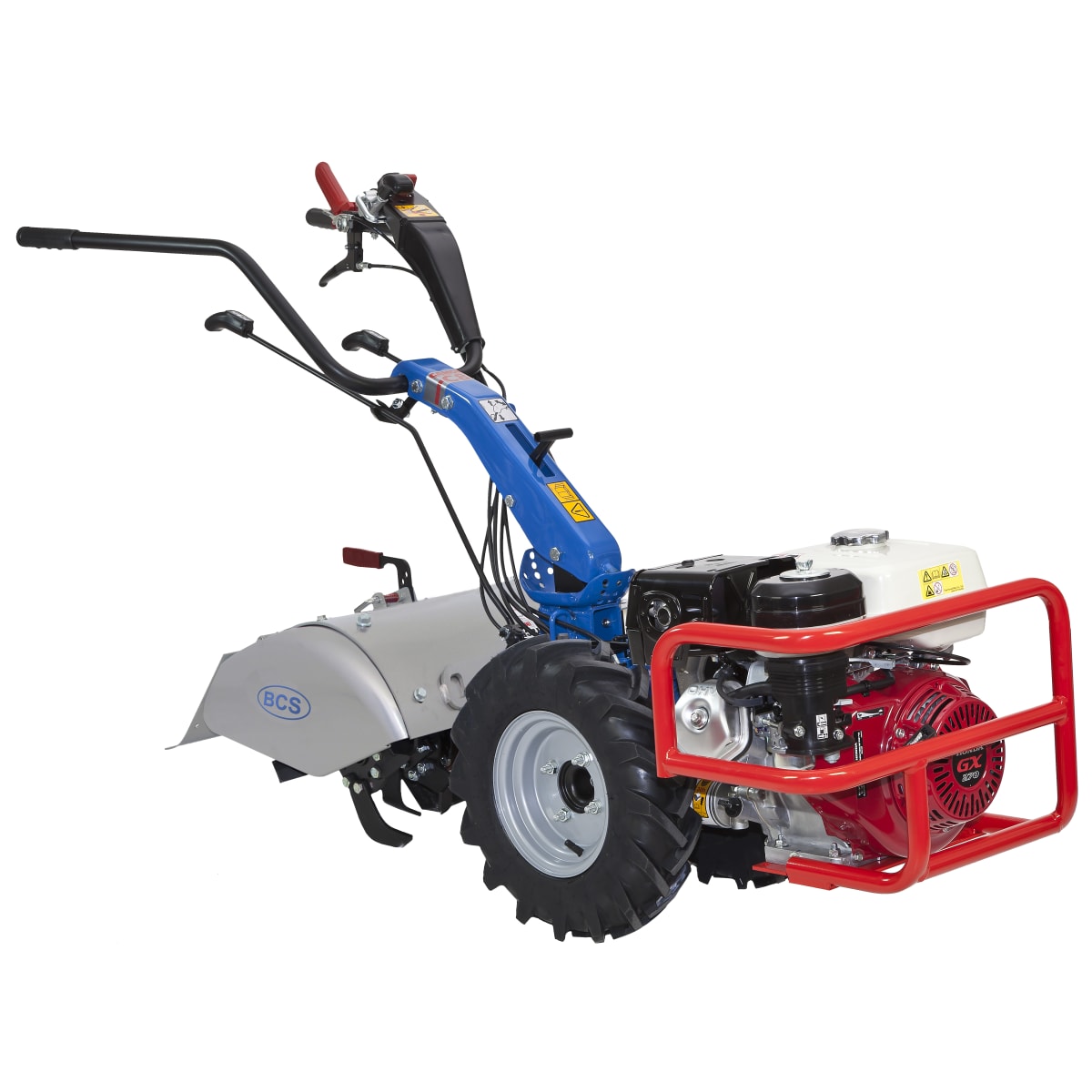 Petrol driven. One forward and one reverse gear. Ideal for landscaping. Safety lockout to prevent simultaneous engagement of digging blades and reverse gear for operator protection. Anti-vibration and adjustable handlebars for operator comfort and safety.