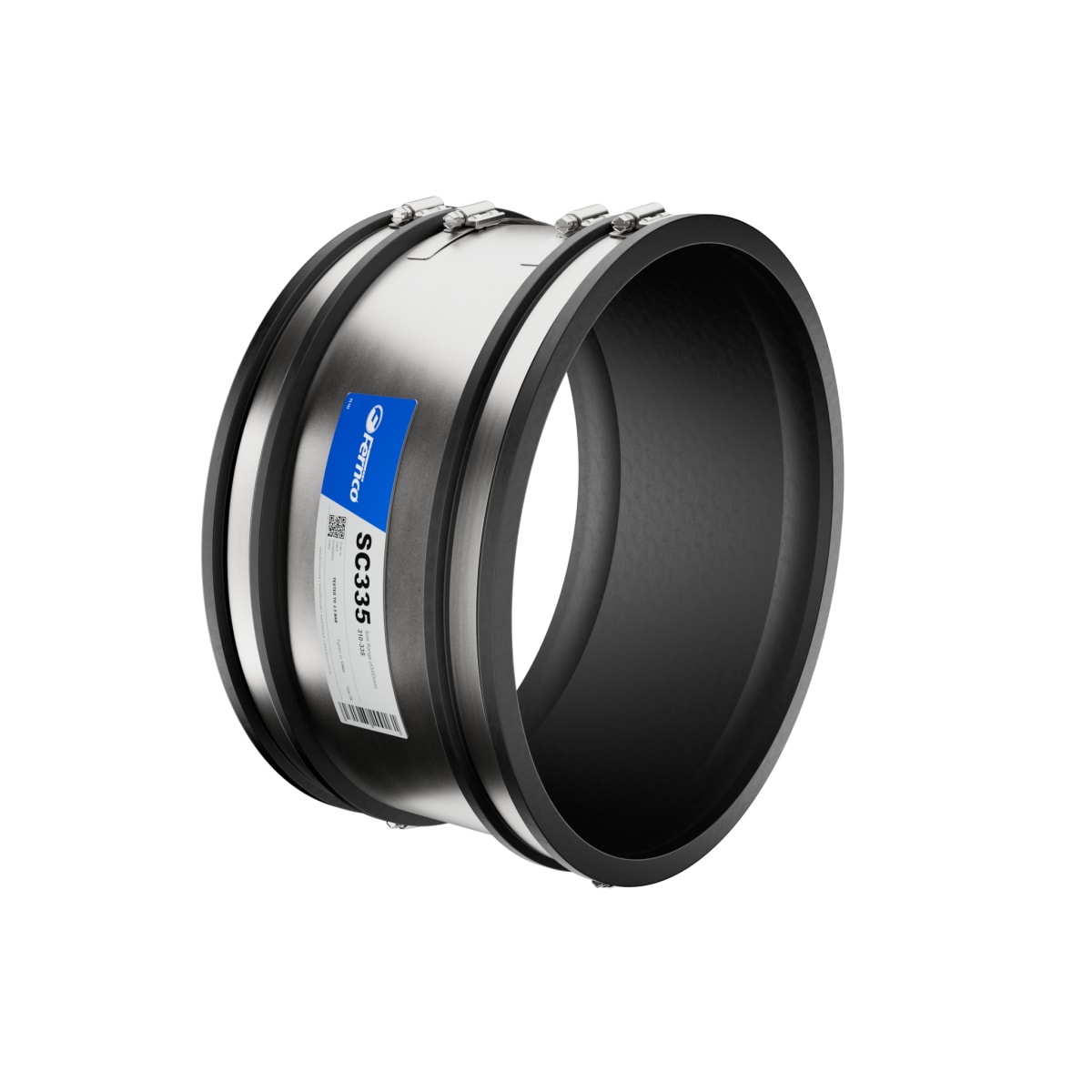 Shear banded couplings are specifically designed to connect and repair pipes on adopted sewer and drainage applications, as required by the UK water companies. The stainless steel central band protects the joint under shear loads and helps to keep the joining pipes aligned, helping to prevent pipe displacement.